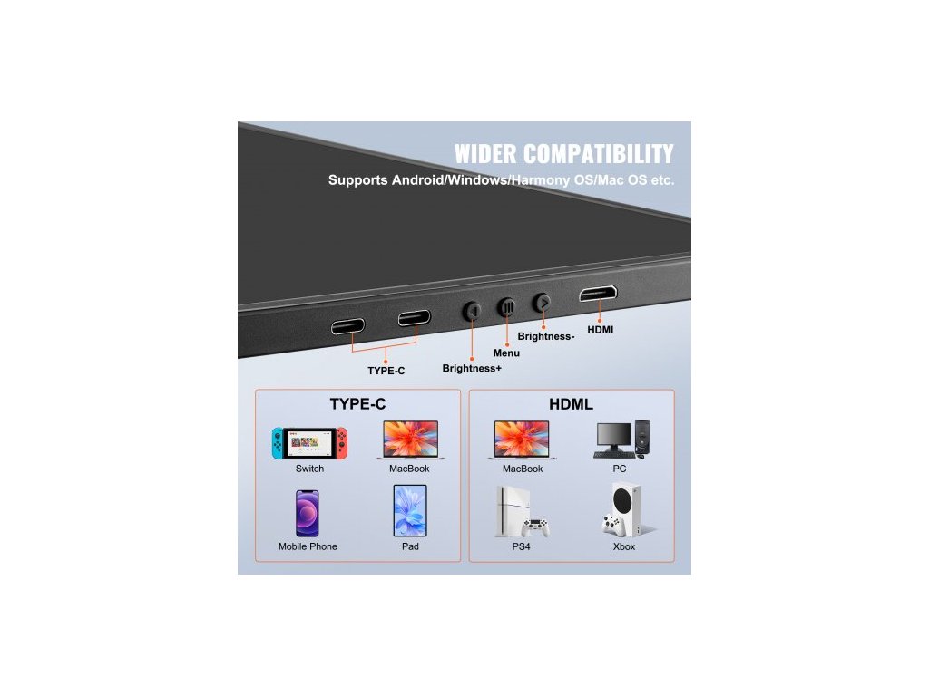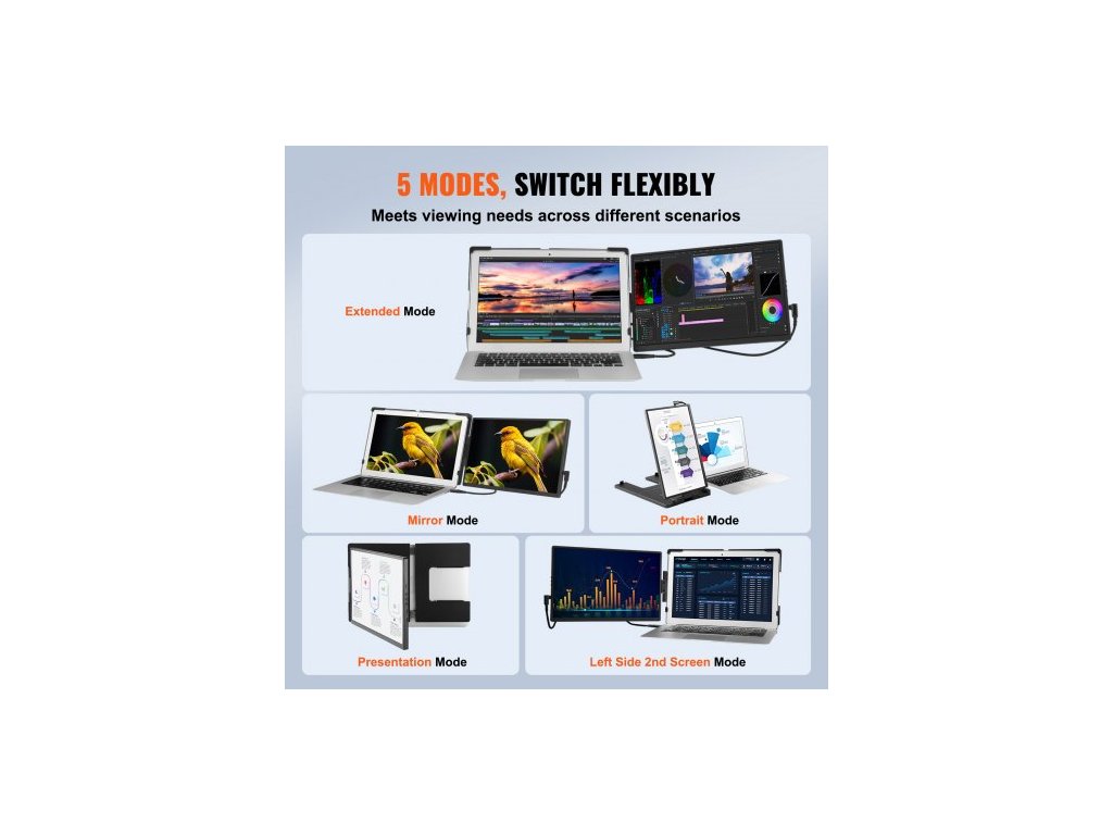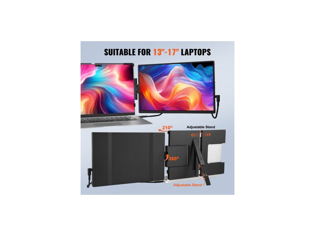 Přenosný monitor prodlužovač obrazovky notebooku 35,6 cm HD 1080P pro notebooky s úhlopříčkou 33–43,2 cmPřenosný prodlužovač obrazovky notebooku 14 palců