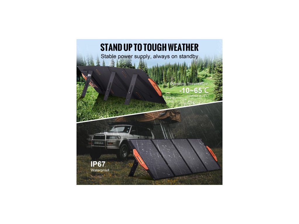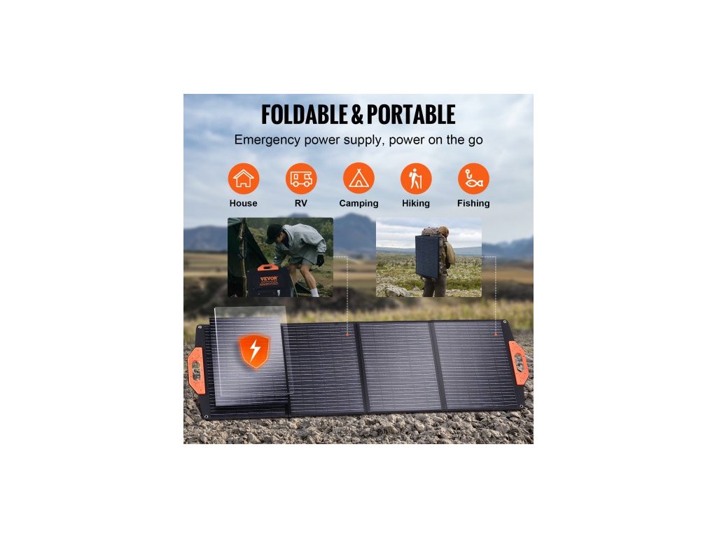 Přenosný monokrystalický solární panel , skládací monokrystalická ETFE solární nabíječka 120 W, solární panel s účinností 23 % s konektorem typu C, DC 18 V, USB port QC3.0, vodotěsný IP67 pro domácnost, offline použití a turistikuVšestranná přenosnost
