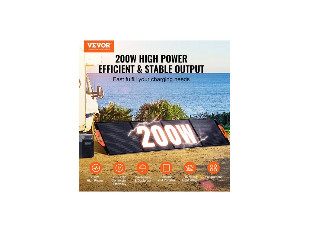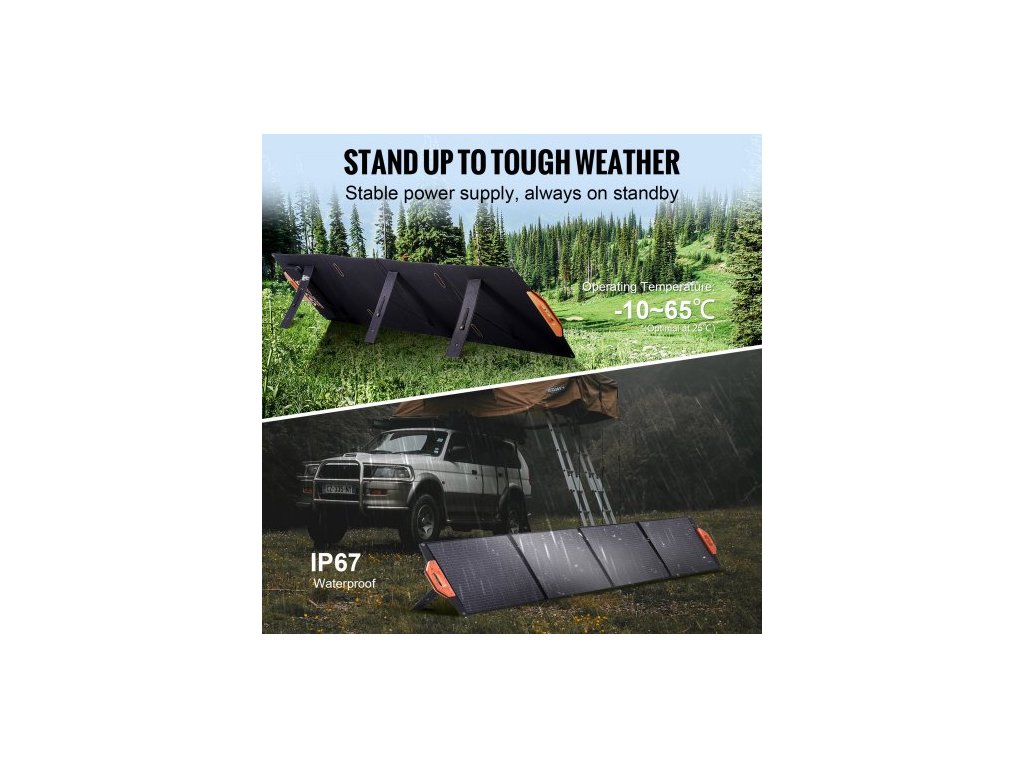 Přenosný monokrystalický solární panel , skládací 200W monokrystalická solární nabíječka z ETFE, solární panel s účinností 23 % a výstupem MC4, vodotěsný s krytím IP67 pro elektrárny, kempování, turistiku, offline použitíVšestranná přenosnost