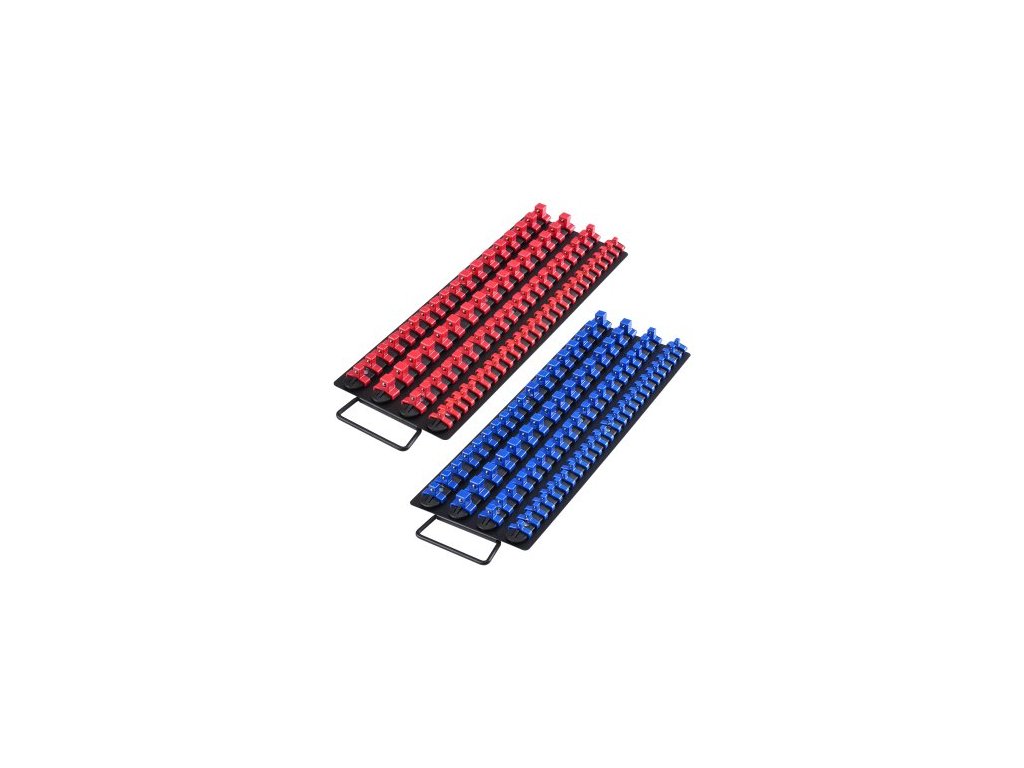 Přenosný organizér na nástrčné klíče , sada 2 ks metrických a SAE organizérů na nástrčné klíče, pojme až 160 nástrčných klíčů, 1/4", 3/8" a 1/2" odolná lišta na nástrčné klíče s rukojetí a ocelovou základnou pro zásuvku na nářadí