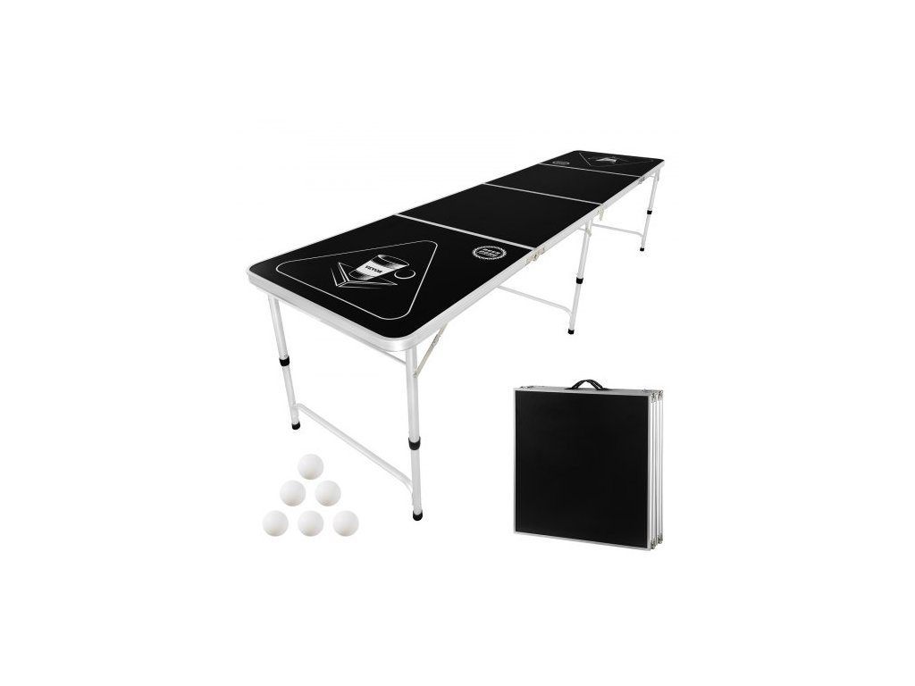 Přenosný pivní pongový stůl o délce 8 stop, skládací stůl s výklopnými dveřmi, rukojeti a 6 pongových míčků, nastavitelná výška, lehký stůl do kanceláře, na párty s výklopnými dveřmi, na cestování a kempování, černýSkládací pivní pongový stůl