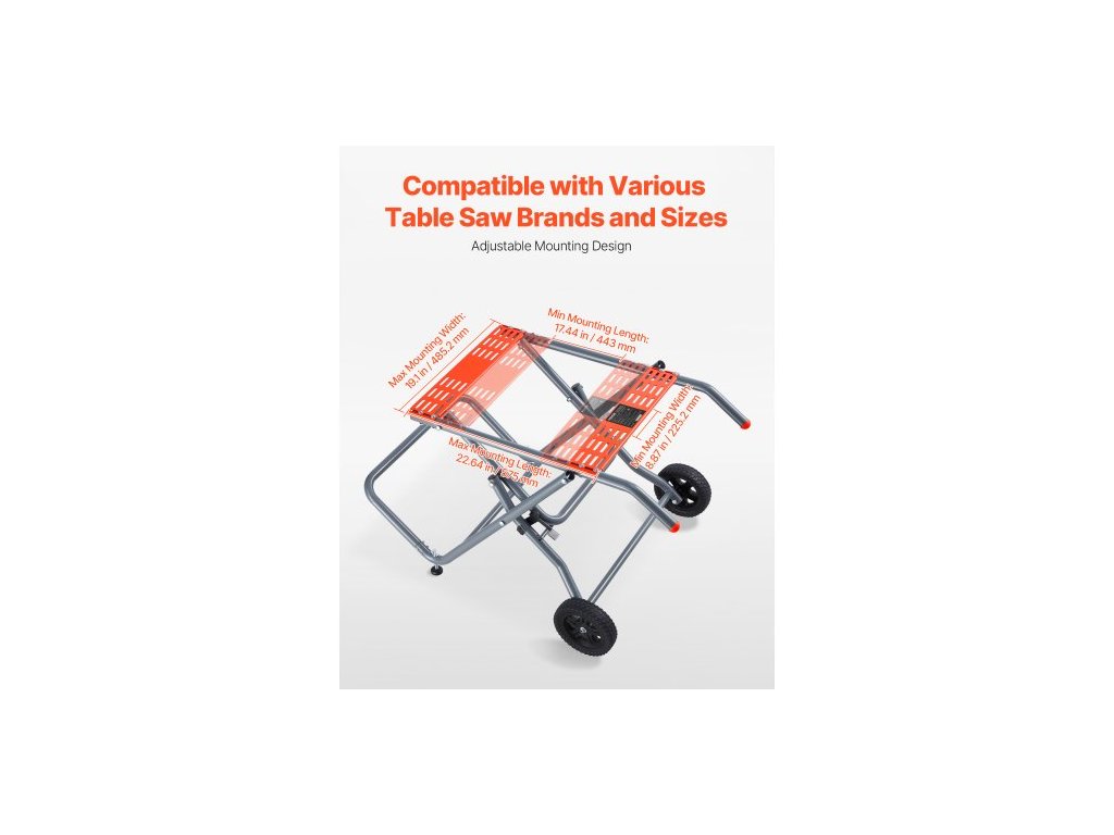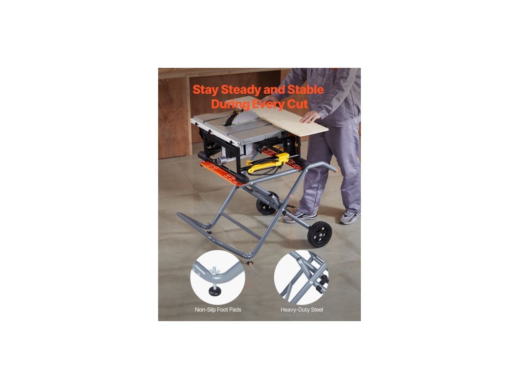 Přenosný stojan na stolní pilu , nosnost 159 kg, pojízdný skládací stůl stolní pily s gumovými kolečky 203 mm, odolná konstrukce, snadné skladování, univerzální pro většinu značek stolních pilFunkce 2 v 1