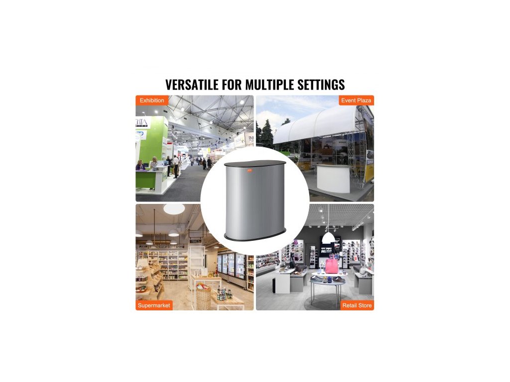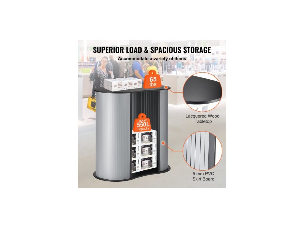 Přenosný veletržní pódiový stůl , 90 × 49 × 94 cm, Výstavní pult, stánek, veletržní stánek se stěnou, skládací propagační barový stůl, výsuvný pódiový pult s přepravní taškouVšestranný a robustní výstavní stůl