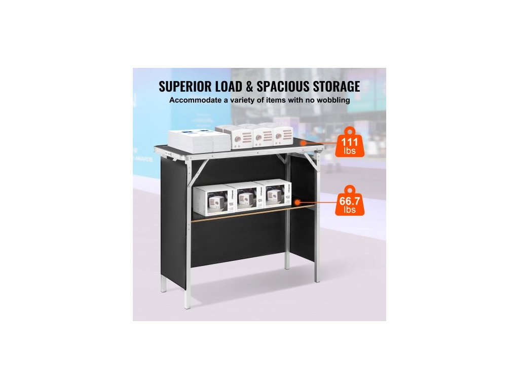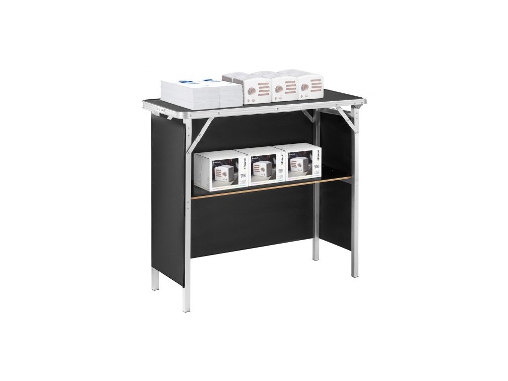 Přenosný veletržní pódiový stůl , 97,5 × 38,5 × 87 cm, Výstavní pultový stánek, veletržní stánek se stěnou, skládací propagační maloobchodní barový stůl, pódium s úložným prostorem a přepravní taškouOdolné materiály