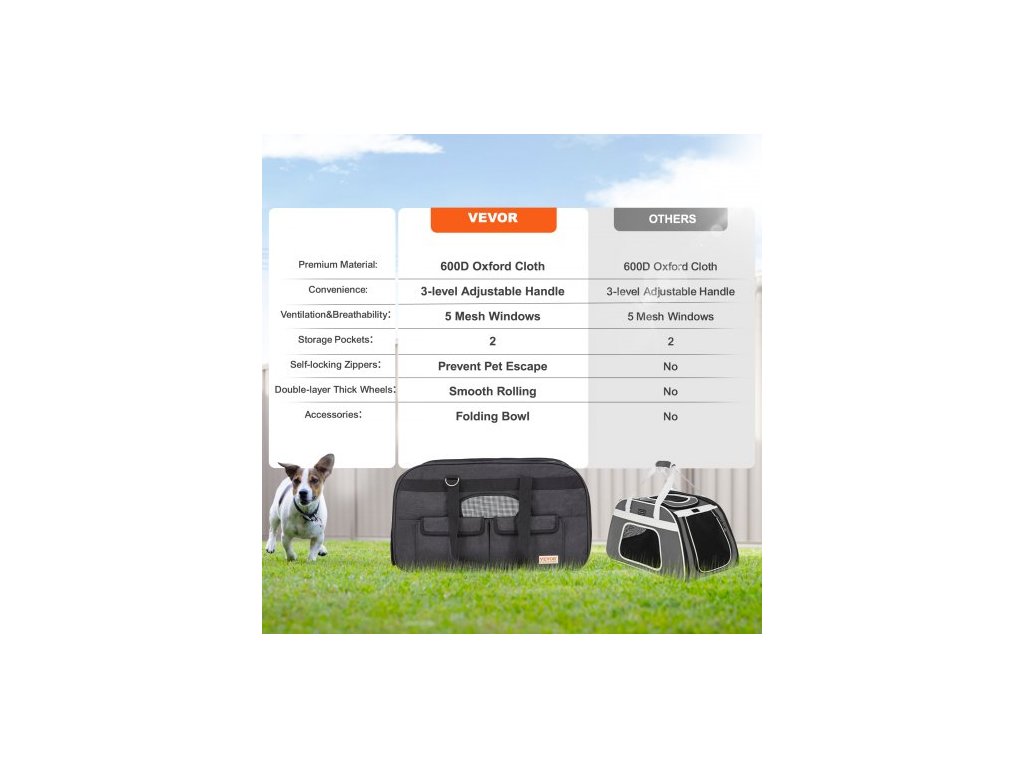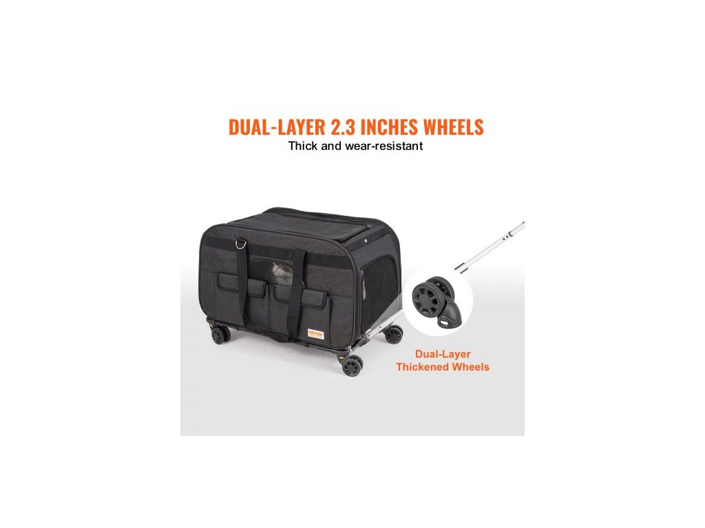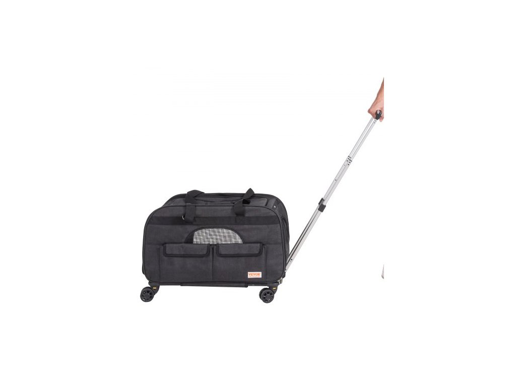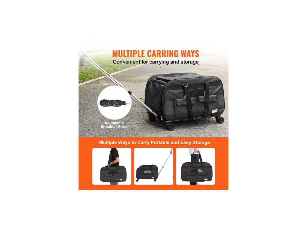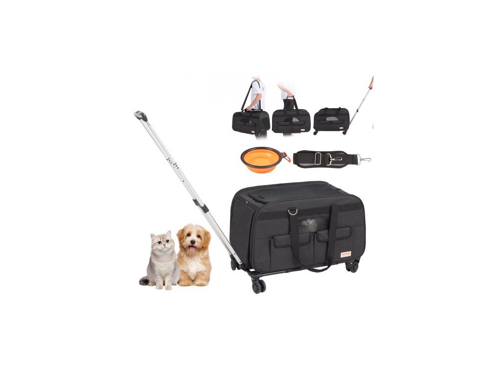 Přepravka pro kočky s kolečky, Přepravka pro domácí mazlíčky s teleskopickou rukojetí a ramenním popruhem, Přepravka pro psy s kolečky pro domácí mazlíčky do 15,9 kg, s 1 skládací miskou, černáOdolná kolečka