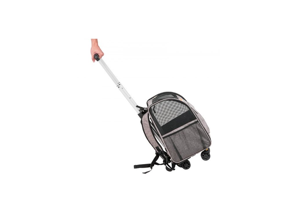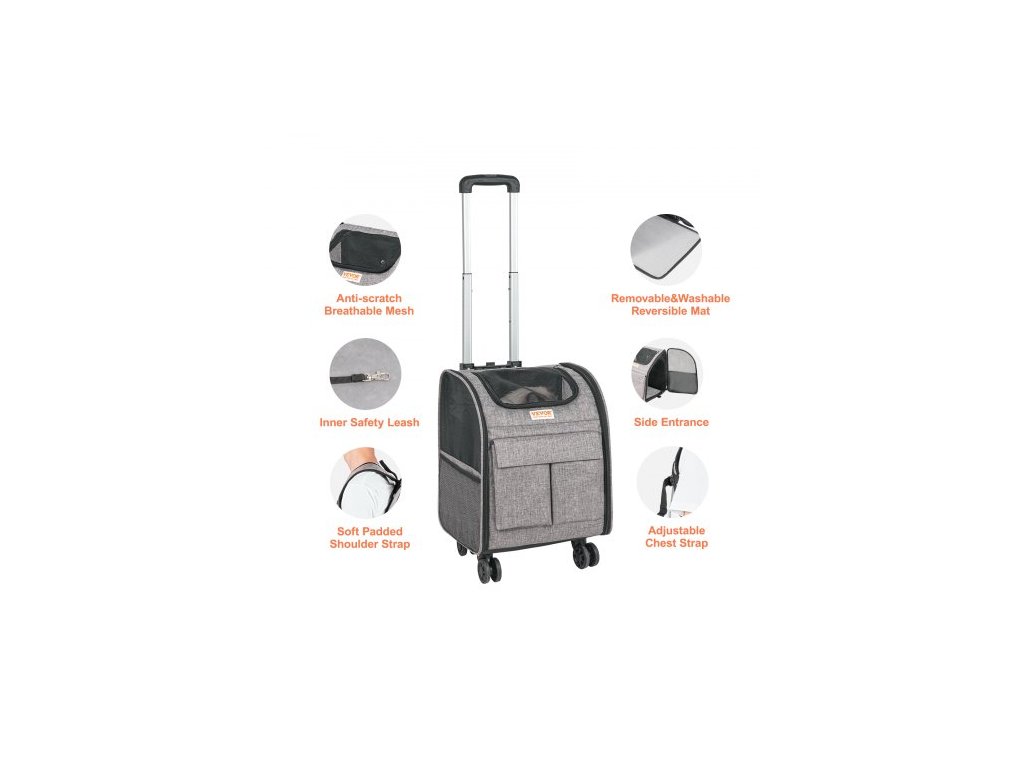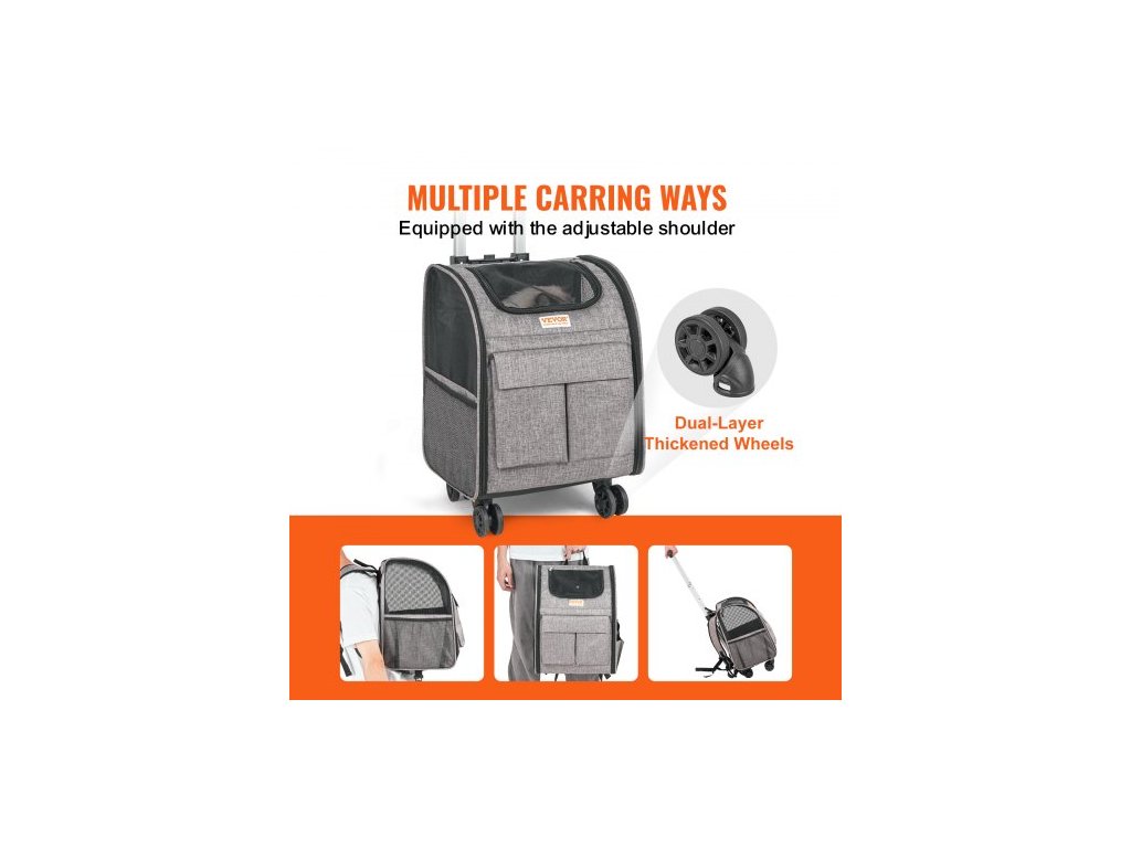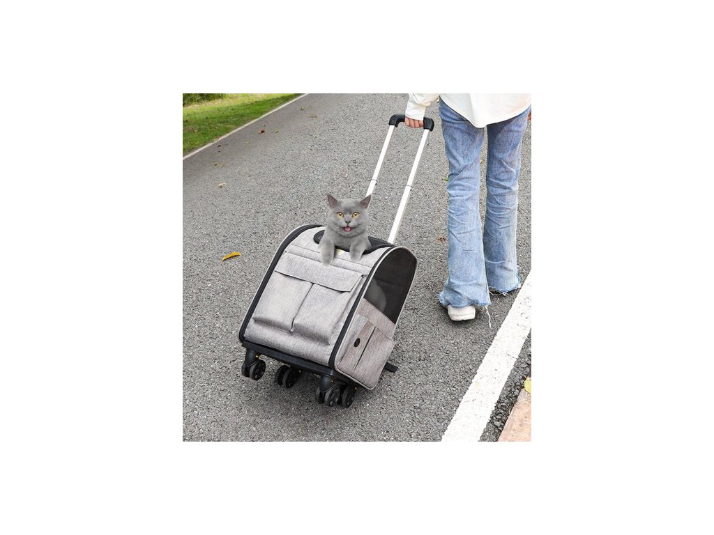 Přepravka pro kočky s kolečky, Přepravka pro domácí mazlíčky s teleskopickou rukojetí a ramenním popruhem, Přepravka pro psy s kolečky pro domácí mazlíčky do 18 lbs, s 1 skládací miskou, šedáOdolná kolečka