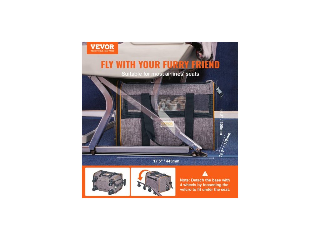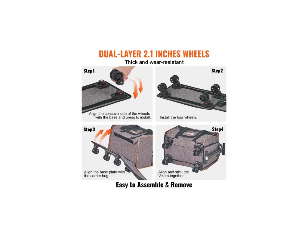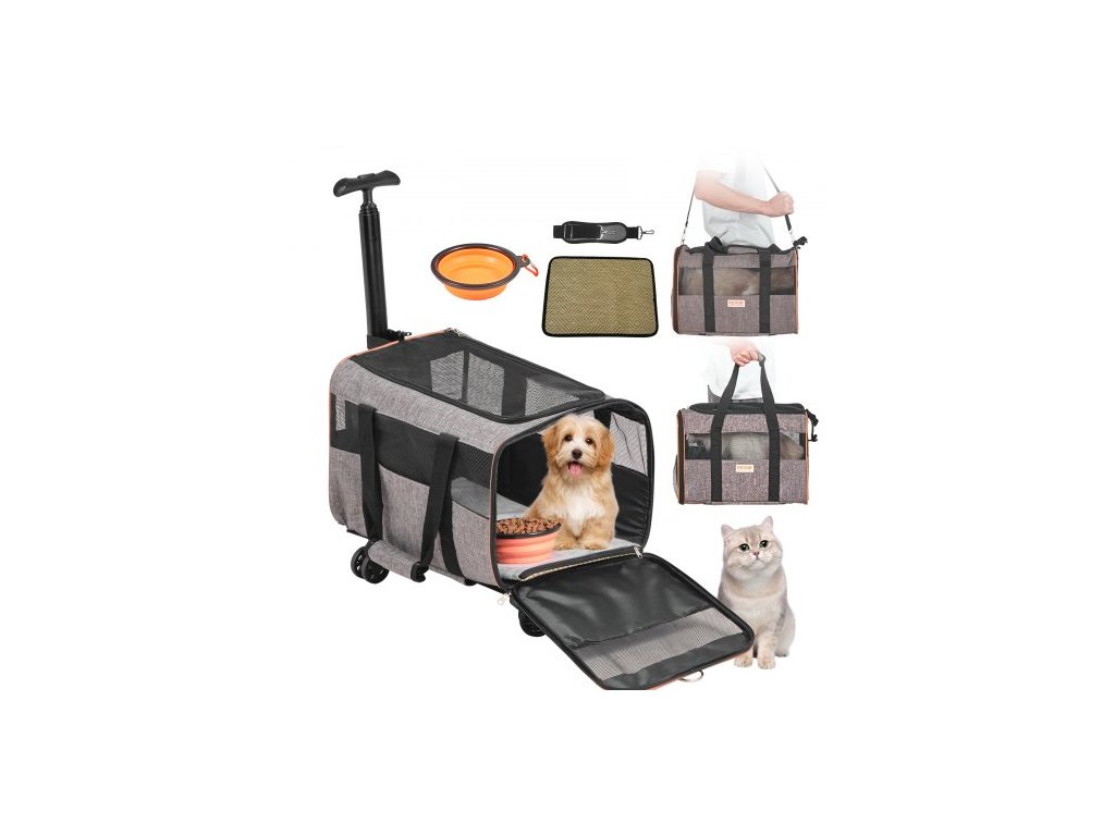Přepravka pro kočky s kolečky, schválená leteckou společností, kolečková přepravka pro domácí mazlíčky s teleskopickou rukojetí a ramenním popruhem, přepravka pro psy s kolečky pro domácí mazlíčky do 10 kg, s 1 skládací miskou, šedáOdolná kolečka
