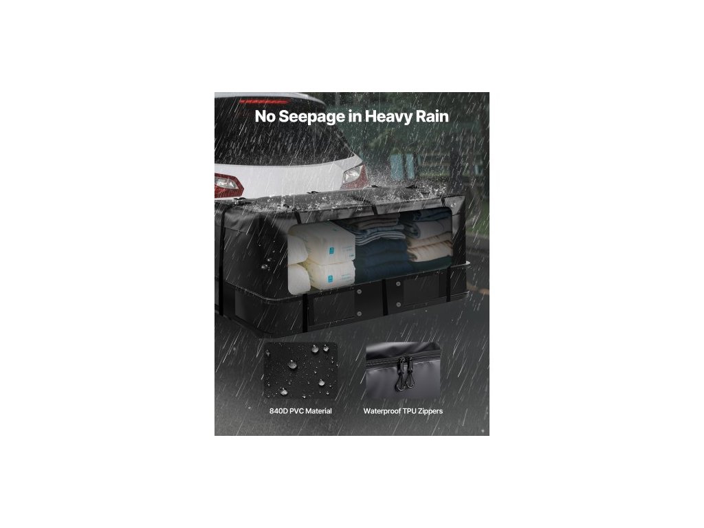 Přepravní taška na tažné zařízení, vodotěsné PVC 840D, 59,84 x 24,02 x 24,41 palce (20 krychlových stop), odolná nákladní taška pro uskladnění na korbě nákladního vozu se 6 zesílenými popruhy, vhodná pro tažné koše dodávek a osobních automobilů