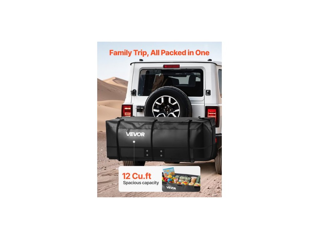 přepravní taška na tažné zařízení, vodotěsné PVC 840D, 46,65 x 20,08 x 19,69 palce (12 krychlových stop), odolná nákladní taška pro uložení na korbě nákladního vozu s vyztuženými popruhy, vhodná pro tažné koše automobilů, SUV, dodávekExtra velká kapacita