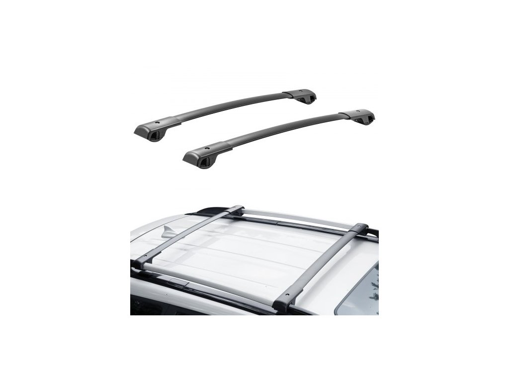 Příčníky střešního nosiče , vhodné pro Subaru Forester 2014-2021 se zvýšenými bočními ližinami, nosnost 90 kg, hliníkové příčníky se zámky, pro střešní tašku, zavazadla, kajak, koloBezpečné a stabilní uchycení