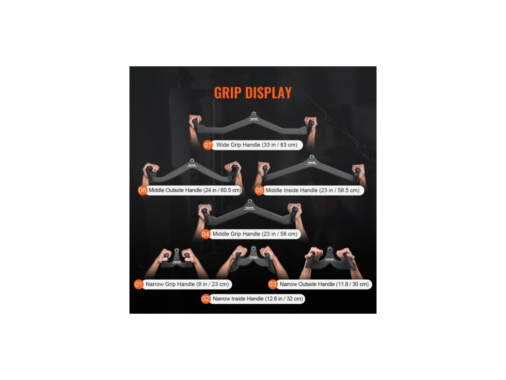 Příslušenství pro laty , veslovací tyč s T-tyčí a V-tyčí, sada 7 sad, tricepsová tyč, posilovací tyč na záda s pogumovanými rukojeťmi, bicepsová tyč, tricepsová tyč na laty pro domácí posilováníSnadné použití a úchop