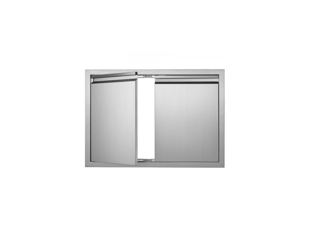 Přístupové dvířka k grilu , dvojitá venkovní kuchyňská dvířka 762x532 mm, nerezová ocelová dvířka zapuštěná do zdi, svislé nástěnné dvířka se zapuštěnými úchyty, pro grilovací ostrůvek, grilovací stanici, venkovní skříňku