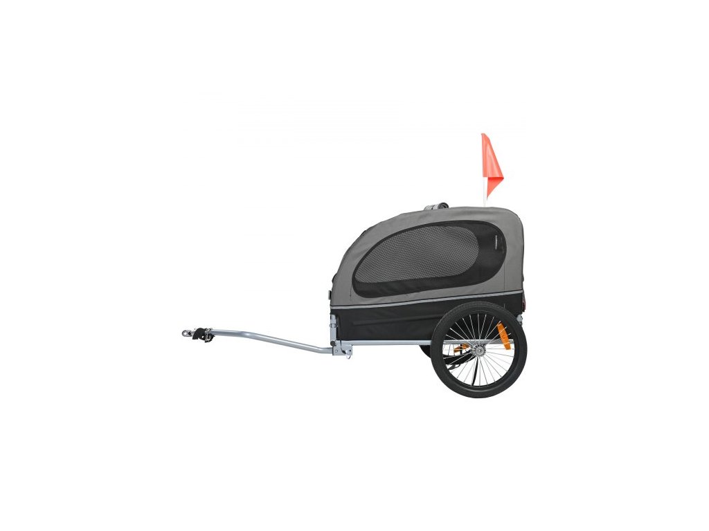 Přívěs pro kolo pro psy , nosnost až 38 kg, nosič kol na vozík pro domácí mazlíčky, snadno skládací rám s rychloupínacími kolečky, univerzální spojka na kolo, odrazky, vlajka, skládací pro skladování, černá/šedáPřívěs pro kolo pro domácí mazlíčky