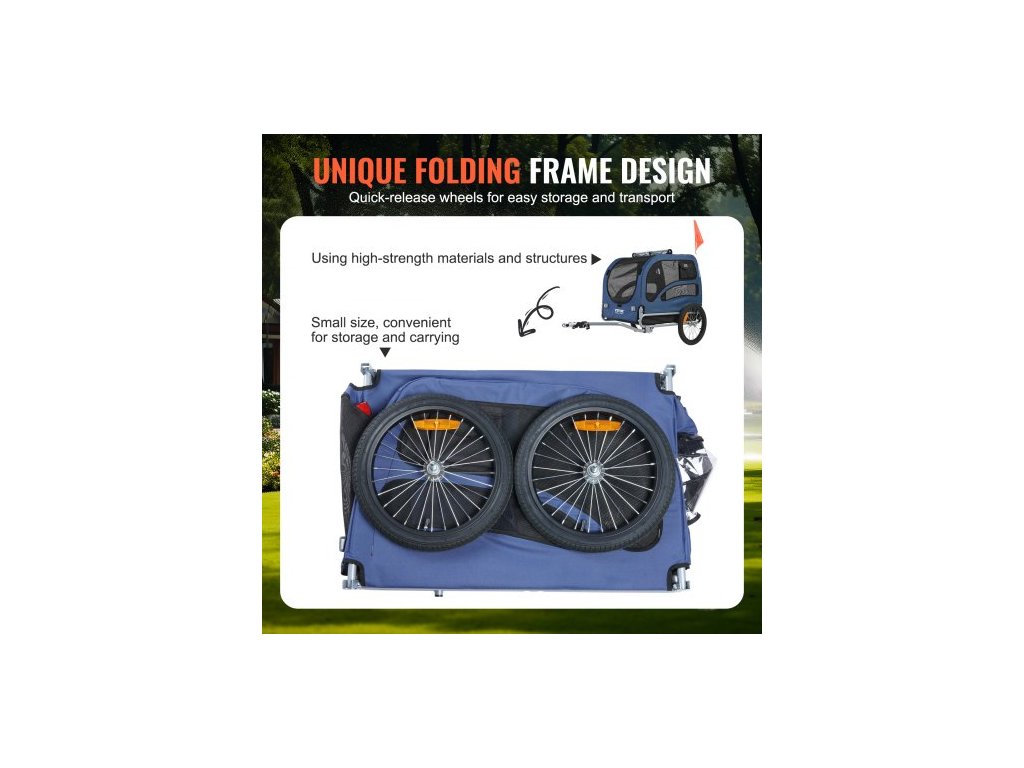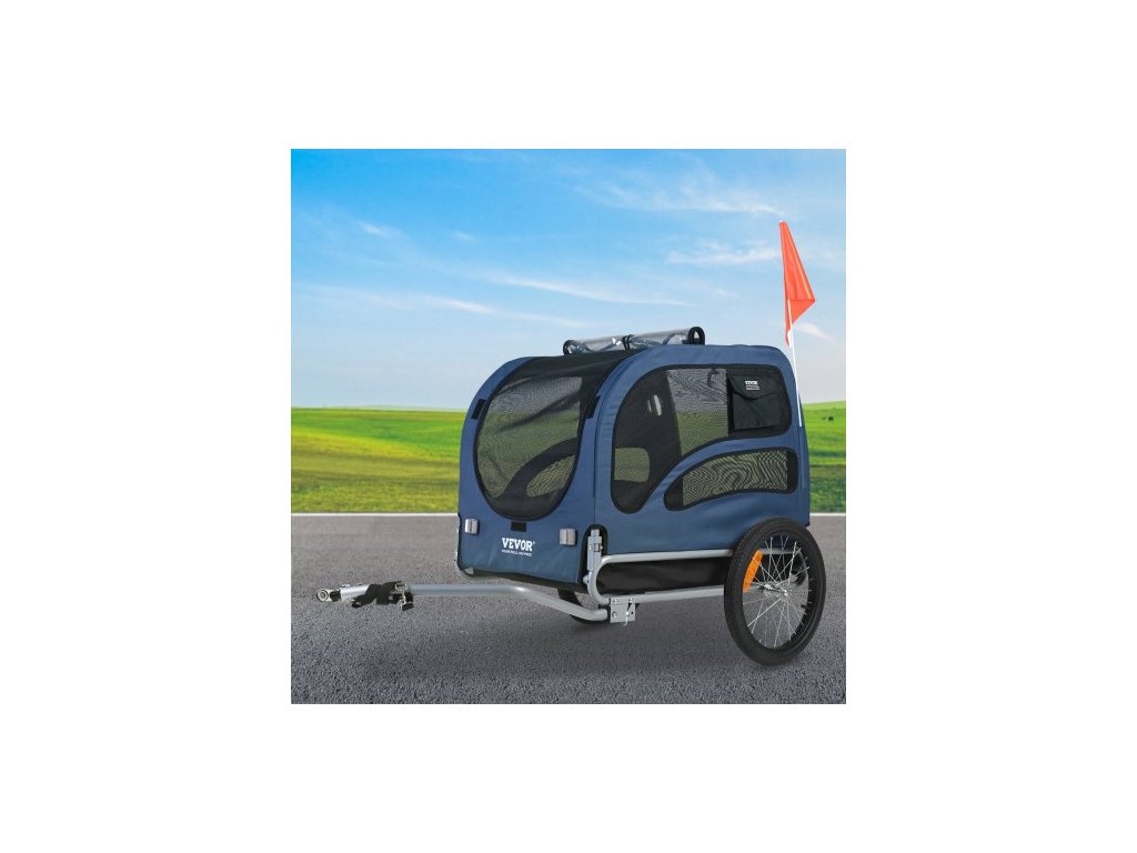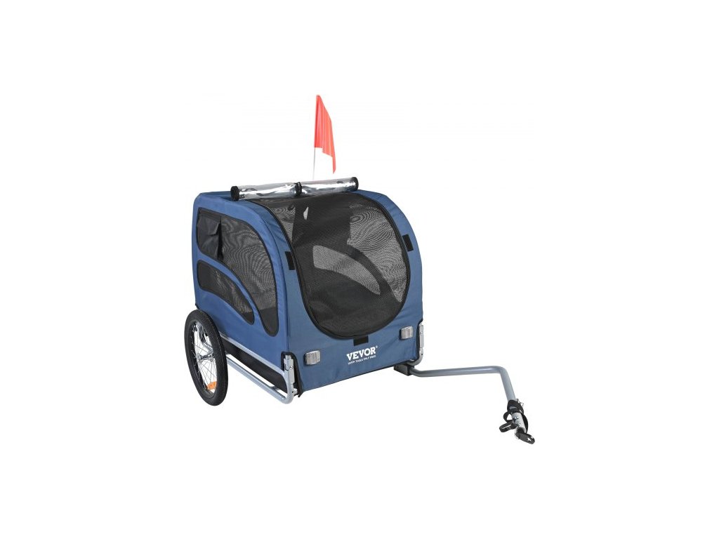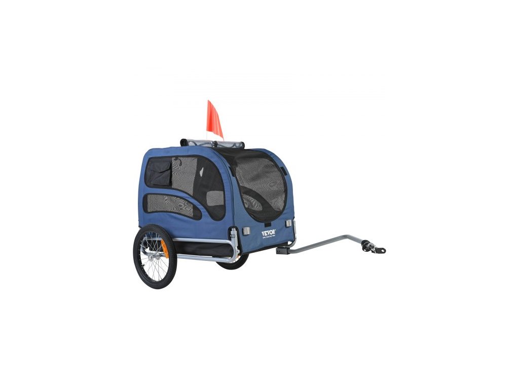 Přívěs pro kolo pro psy , nosnost až 45 kg, nosič kol na vozík pro domácí mazlíčky, snadno skládací rám s rychloupínacími kolečky, univerzální spojka na kolo, odrazky, vlajka, skládací pro skladování, modrá/černáPřívěs pro kolo pro domácí mazlíčky