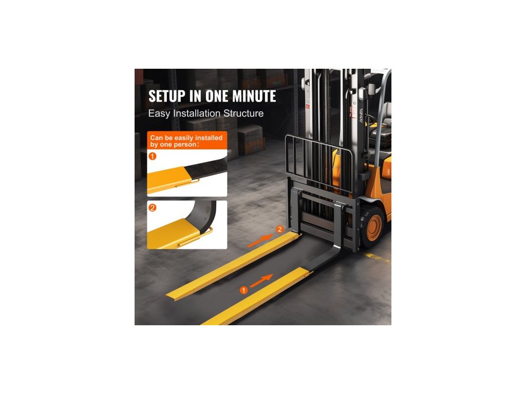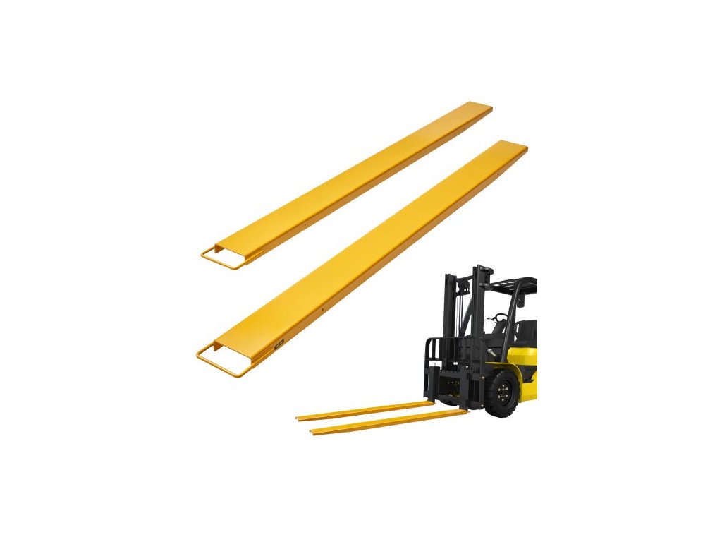 Prodloužení paletových vidlí , délka 96" a šířka 6,5", odolná prodloužení vidlí z uhlíkové oceli pro vysokozdvižné vozíky, 1 pár prodloužení vidlí, průmyslové příslušenství pro vysokozdvižné vozíky, žluté