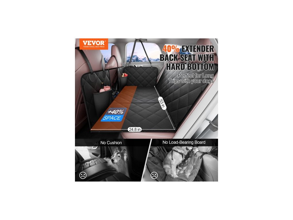 Prodloužení zadního sedadla pro psy, houpací síť pro psy na zadní sedadlo auta, potah na autosedačku s tvrdým dnem, pelíšek do autosedačky 53"x24,8", nosnost 350 liber se síťovaným okénkem a úložnou kapsou pro auto, SUV, nákladní auto