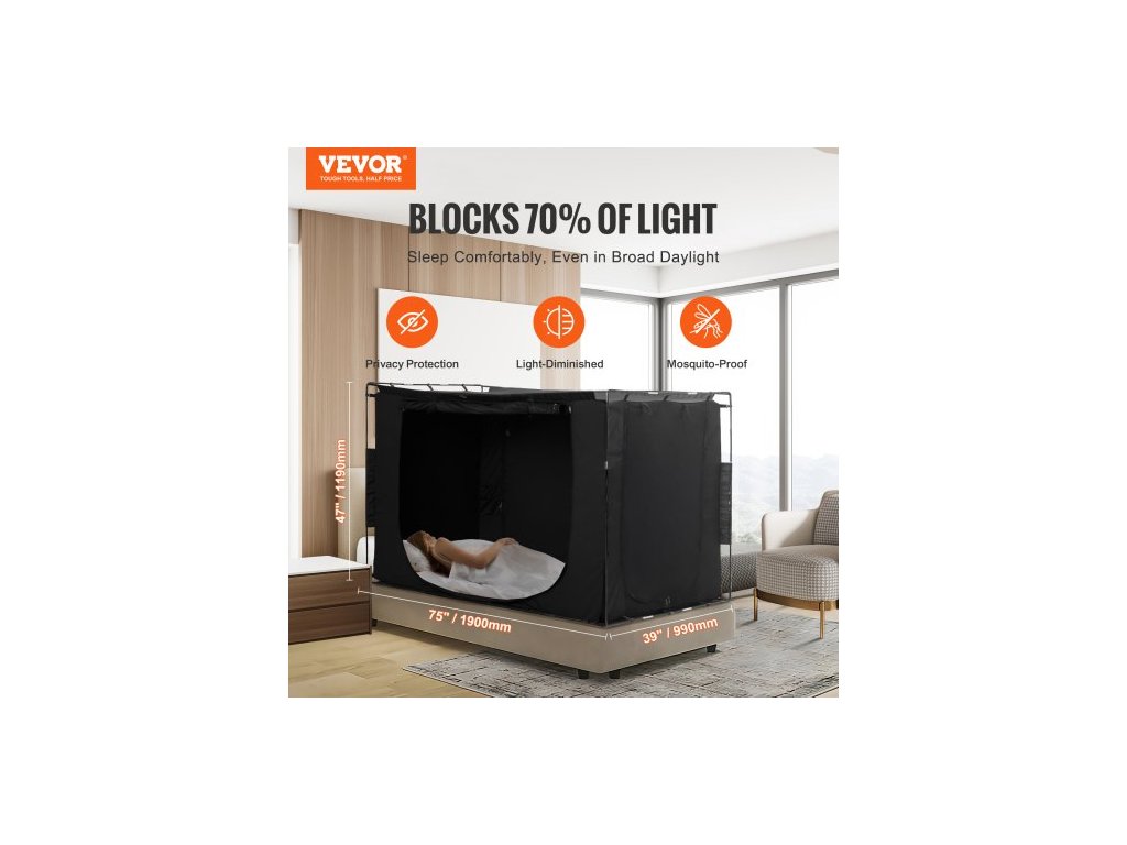 3dveřový stan s lůžkem, prodyšný, 70% zatemnění, s vláknitými tyčemi o tloušťce 0,37 palce, 1900 x 990 x 1190 mm, 3dveřový stan pro zajištění soukromí, nastavitelné ovládání světla, prostorný a pohodlný, rychlé a snadné nastavení, všestranné použití, praktické funkce, tvar: obdélníkový, barva: černá, číslo modelu: 140189, počet dveří: 3 síťované dveře, 2 dveře na dlouhé straně, 1 dveře na krátké straně, rozměry výrobku: 75" x 39" x 47" (1900 x 990 x 1190 mm), hmotnost netto: 9,3 lbs (4,2 kg)Doplňkové parametry