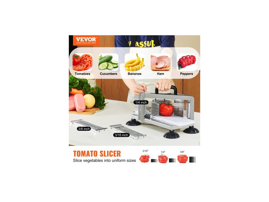 Kráječ rajčat pro komerční účely, 1/4"+3/8"+3/16" kráječ rajčat, nerezový robustní kráječ rajčat, ruční kráječ rajčat s protiskluzovými nožičkami, krájení rajčat, okurek, banánůKráječ rajčat