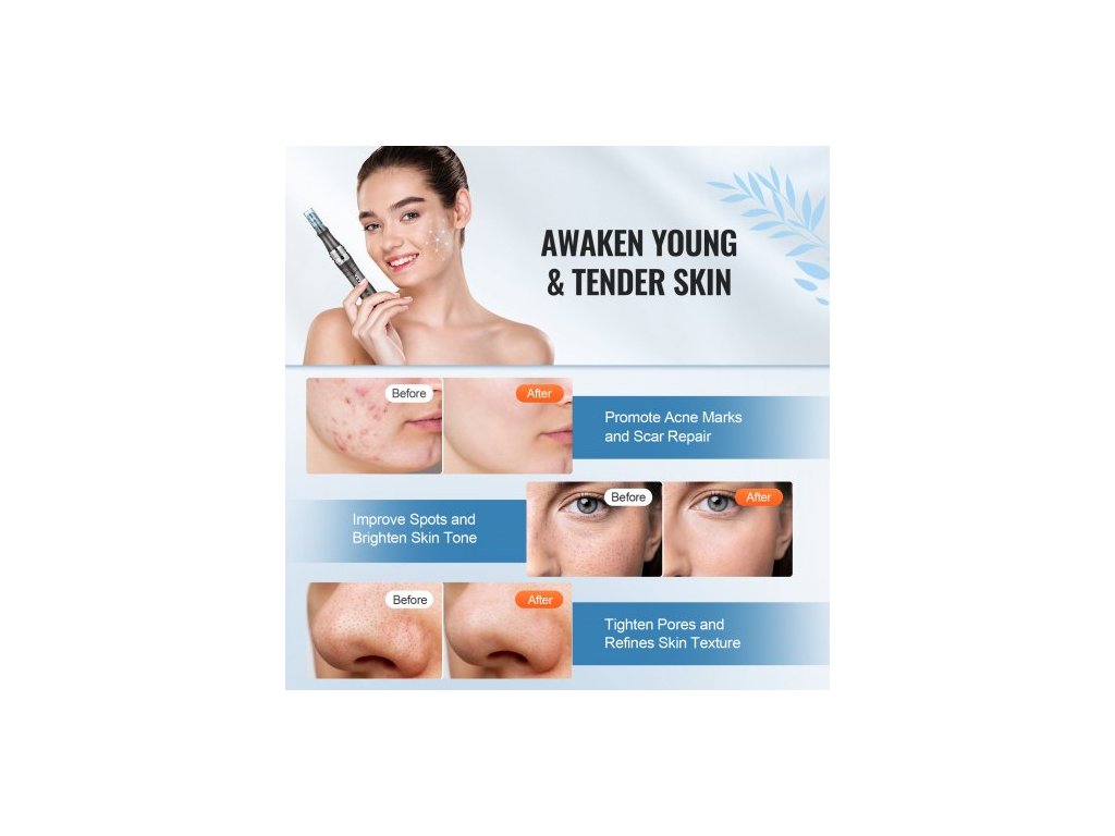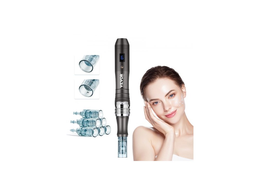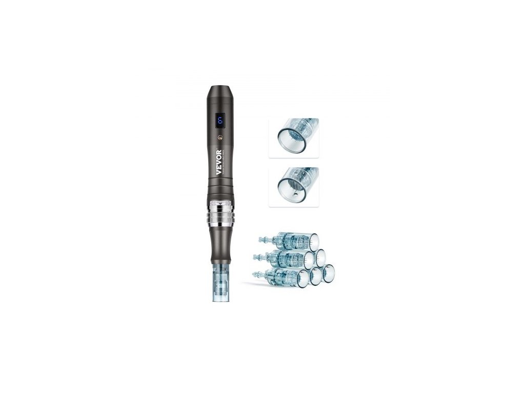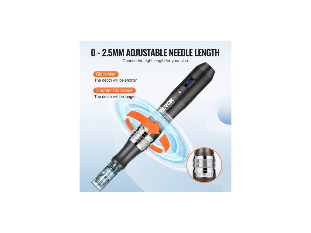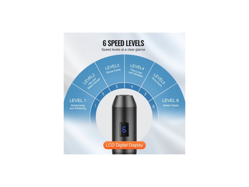 Profesionální mikrojehličkové pero , elektrické dermální pero s jednorázovými kazetami 3 ks * 16 pinů + 3 ks * 36 pinů, 6 zařízení pro péči o pleť s nastavitelnou rychlostí, LCD displejem a nastavitelnou délkou jehly 0-2,5 mmProměnná rychlost