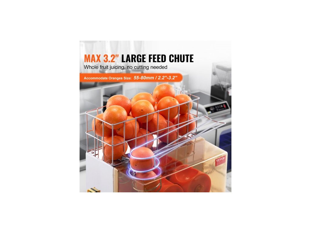 Profesionální odšťavňovač pomerančů, automatický odšťavňovač 120 W, nerezový odšťavňovač pomerančů pro 20 pomerančů za minutu, s výsuvným filtrem, kryt z PC, 2 sběrné nádoby na slupku