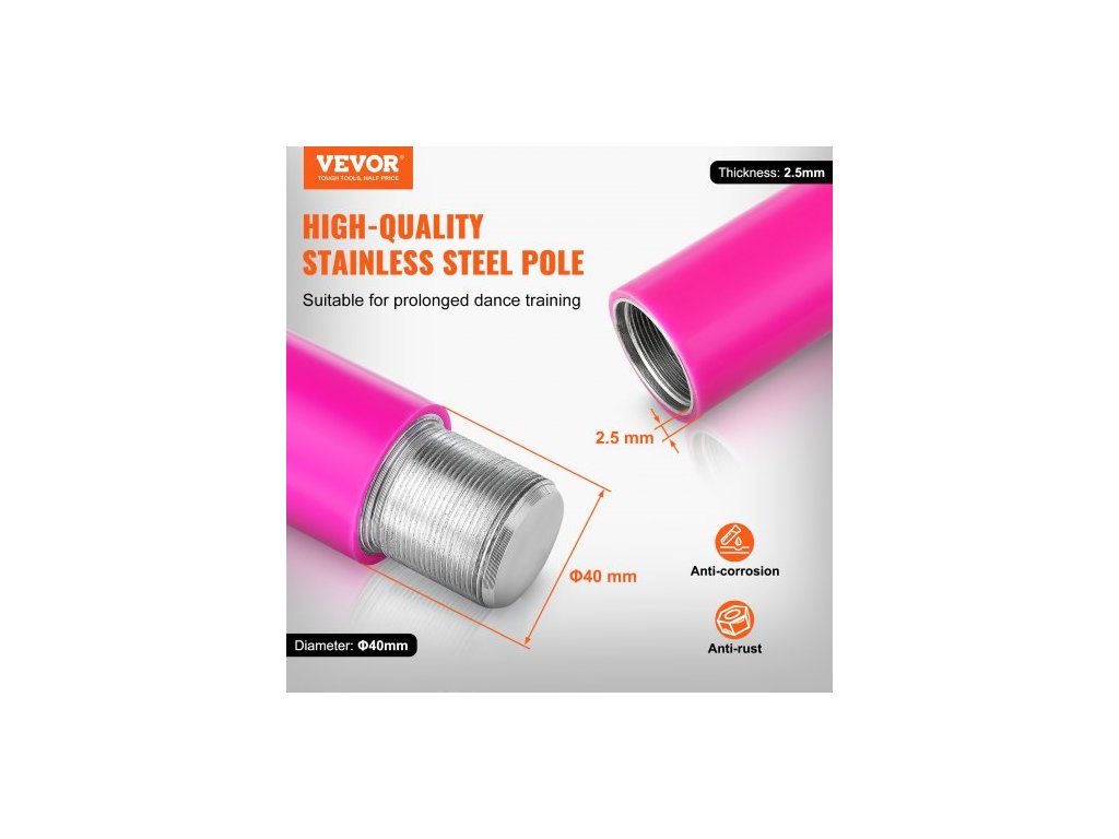Profesionální taneční tyč , sada statických tanečních tyčí, přenosná odnímatelná tyč, 40mm odolná tyč z nerezové oceli, výškově nastavitelná fitness tyč, pro cvičení v domácím klubu, růžová