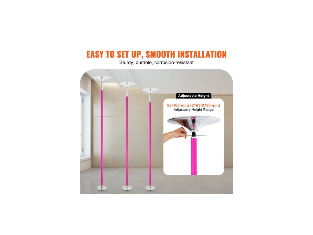 Profesionální taneční tyč, sada rotující statické taneční tyče, přenosná odnímatelná tyč, 40mm odolná tyč z nerezové oceli, výškově nastavitelná fitness tyč, pro cvičení v domácí posilovně, růžováZvýšení vytrvalosti a síly