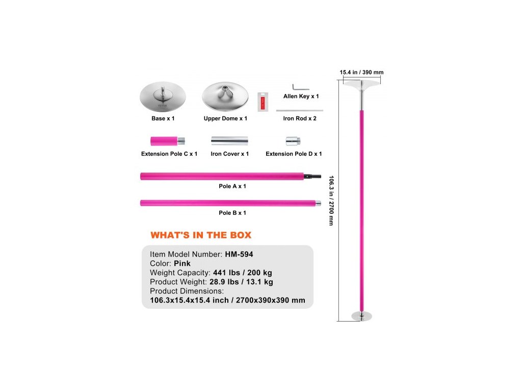 Nosnost: 200 kg,Barva: Růžová,Číslo modelu položky: HM-594,Hmotnost výrobku: 13,1 kg,Rozměry výrobku: 2700x390x390 mm