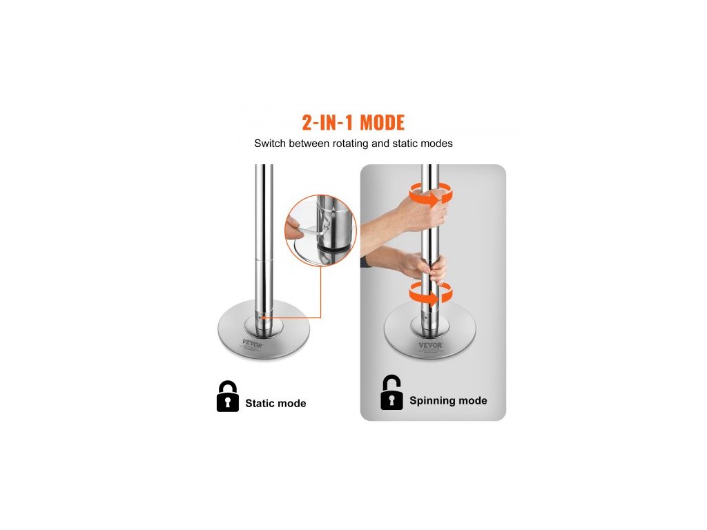 Profesionální taneční tyč, sada rotující statické taneční tyče, přenosná odnímatelná tyč, 45mm odolná tyč z nerezové oceli, výškově nastavitelná fitness tyč, pro cvičení v domácí posilovně, stříbrnáZvýšení vytrvalosti a síly
