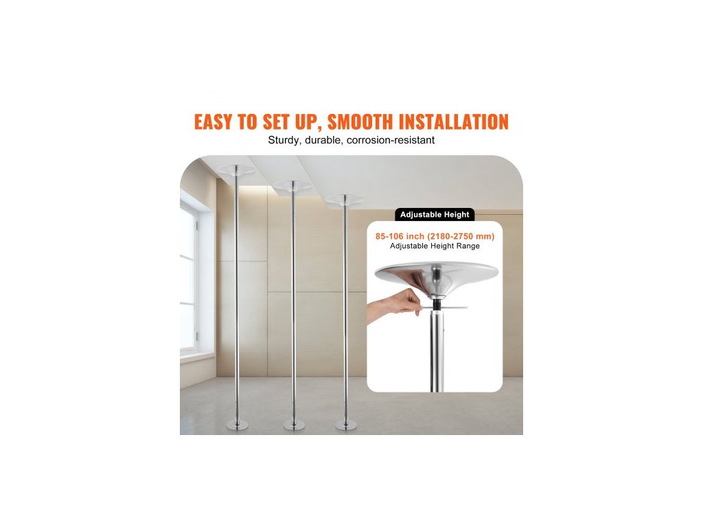 Profesionální taneční tyč , sada statických tanečních tyčí, přenosná odnímatelná tyč, 45mm odolná tyč z nerezové oceli, výškově nastavitelná fitness tyč, pro cvičení v domácím klubu, stříbrná