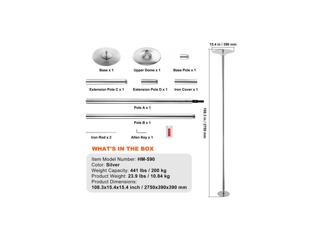 Nosnost: 200 kg,Barva: stříbrná,Číslo modelu položky: HM-590,Hmotnost výrobku: 10,84 kg,Rozměry výrobku: 2750x390x390 mm