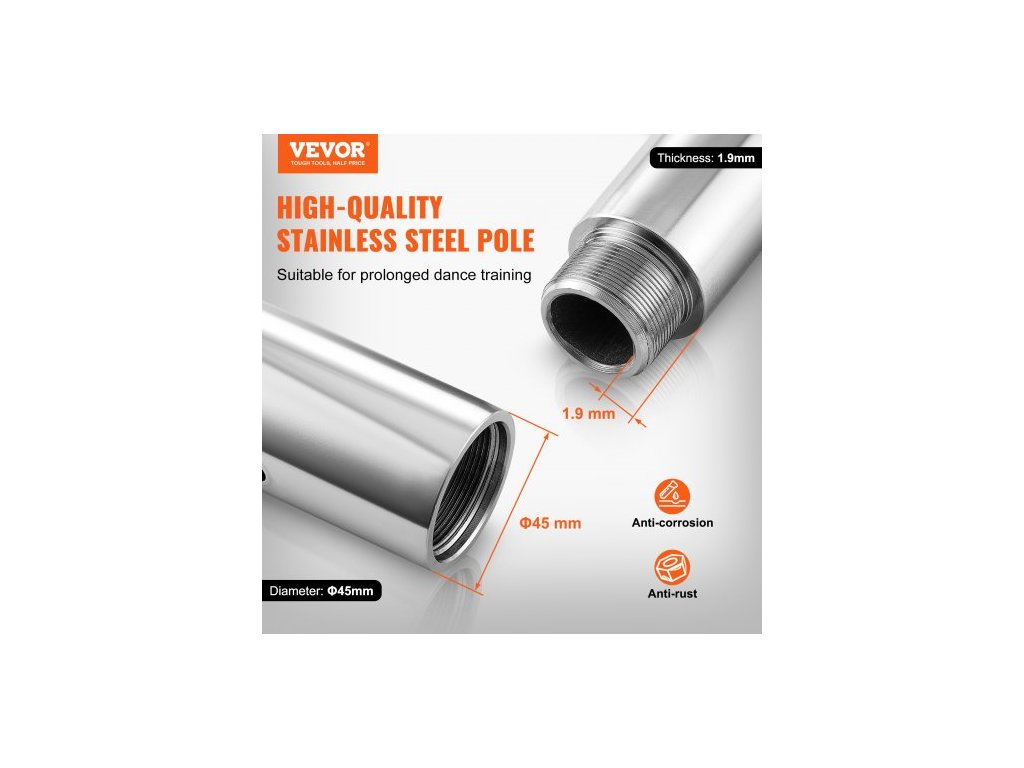 Profesionální taneční tyč , sada statických tanečních tyčí, přenosná odnímatelná tyč, 45mm odolná tyč z nerezové oceli, výškově nastavitelná fitness tyč, pro cvičení v domácím klubu, stříbrná