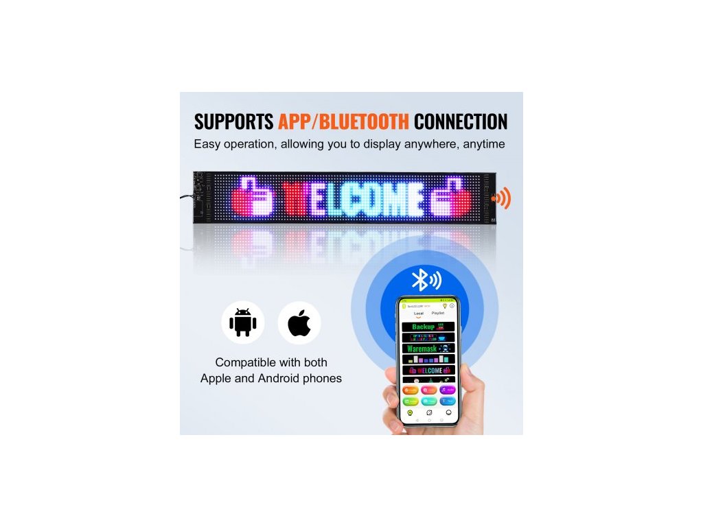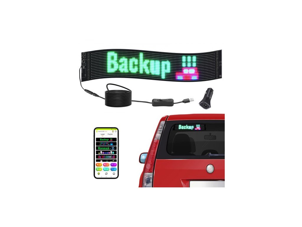 Programovatelný LED displej , P6 plnobarevný LED rolovací panel, DIY zobrazovací deska s animací textu a vlastním vzorem, Bluetooth ovládání pomocí aplikace, reklamní cedule pro firmy a automobily, 68x12cmVysoký jas