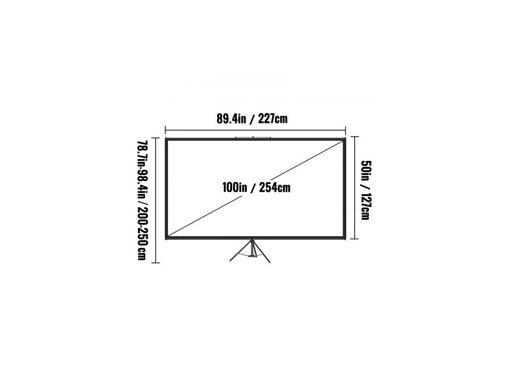 Rozlišení obrazovky: 4K HD,Materiál stativu: Hliníková slitina,Typ stojanu: Stativ,Úhlopříčka: 100"/254 cm,Pozorovací úhel: 160 stupňů,Materiál obrazovky: Polyester,Model: DM-ABS-100,Hmotnost výrobku: 6,6 lbs/3 kg,Výška stojanu: 78,7"-98,4"/200-250 cm (nastavitelný),Poměr stran: 16:9,Plocha obrazu (Š x V): 89,4" x 50" / 227 x 127 cm