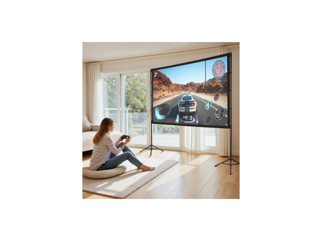 Projekční plátno se stojanem, 100 palců, 160° širokoúhlé projekční plátno pro vnitřní i venkovní použití, 16:9 4K HD bez vrásek, přenosné plátno se dvěma stativy a přepravní taškou, pro prezentace v domácím kině