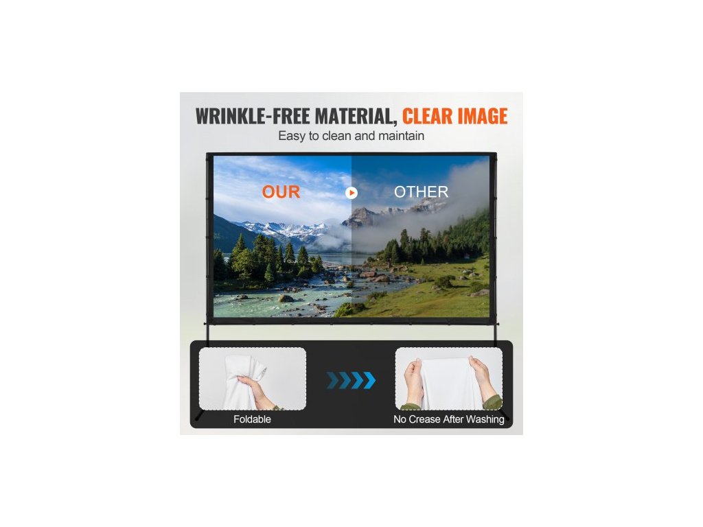 Projekční plátno se stojanem, 100 palců 16:9 4K 1080 HD venkovní filmové plátno se stojanem, projekční plátno bez záhybů s nožičkami a přepravní taškou, pro domácí kino, filmový večer na zahraděMateriál bez záhybů