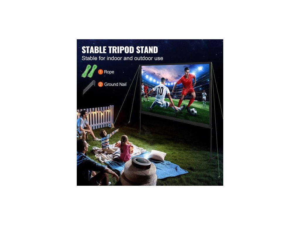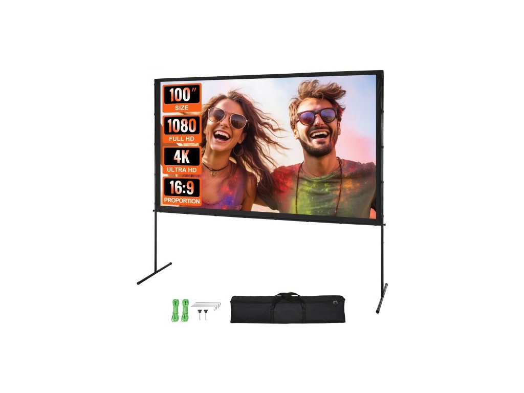 Projekční plátno se stojanem, 100 palců 16:9 4K 1080 HD venkovní filmové plátno se stojanem, projekční plátno bez vrásek s nožičkami a přepravní taškou, pro domácí kino, filmový večer na zahradě
