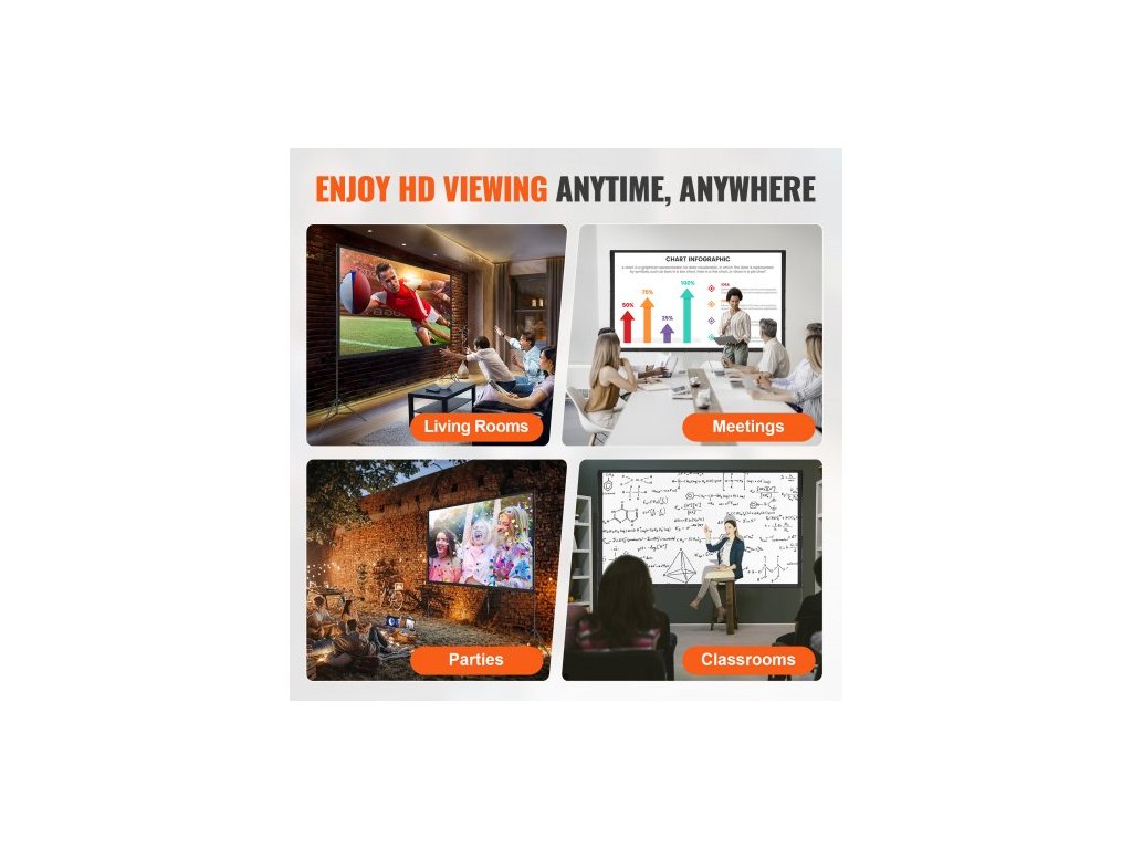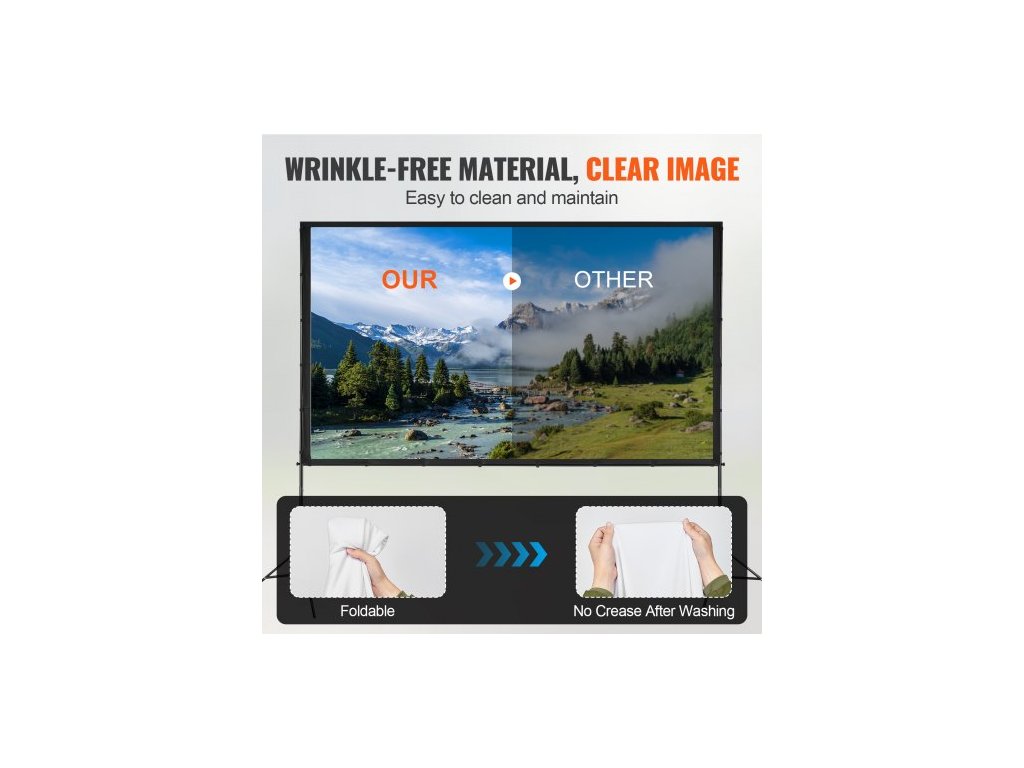 Projekční plátno se stojanem, 120 palců 16:9 4K 1080 HD venkovní filmové plátno se stojanem, projekční plátno bez záhybů se stativmi a přepravní taškou, pro domácí kino, filmový večer na zahraděMateriál bez záhybů