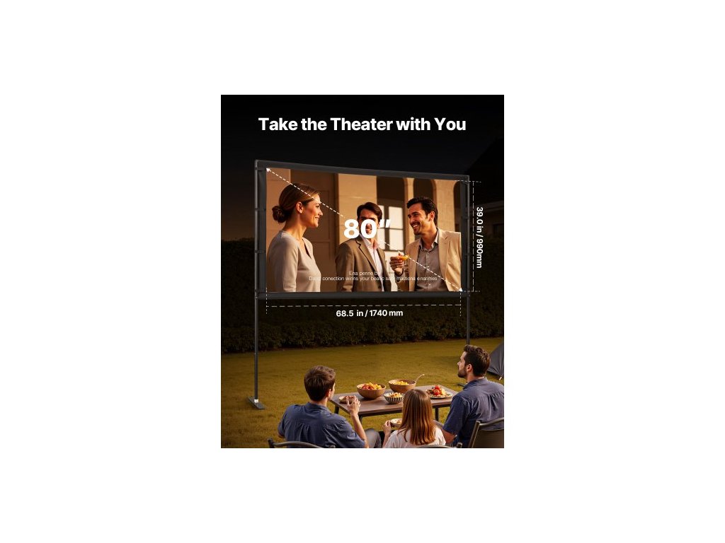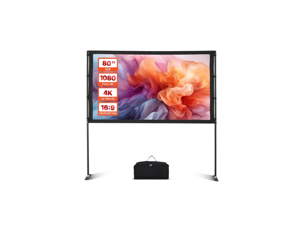 Projekční plátno se stojanem, 80 palců, 160° širokoúhlé projekční plátno pro vnitřní i venkovní použití, 16:9 4K HD bez vrásek, přenosné plátno se dvěma stojany a přepravní taškou, pro prezentace v domácím kině