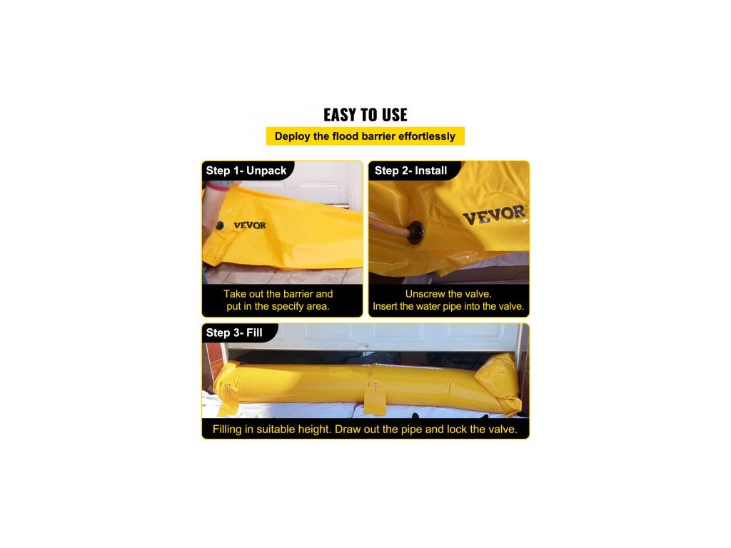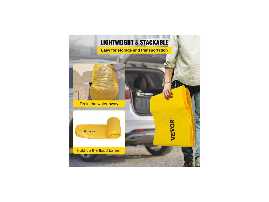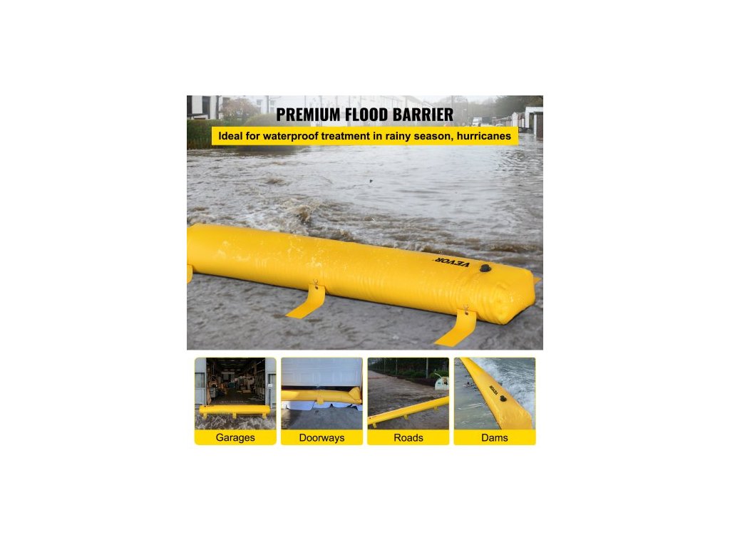 Protipovodňový vak , 732 × 50,8 × 30,5 cm, Opakovaně použitelné PVC trubky na odvádění vody, lehké s vynikajícím vodotěsným účinkem, používané pro dveře, garáže, žlutéVynikající ochrana proti povodním