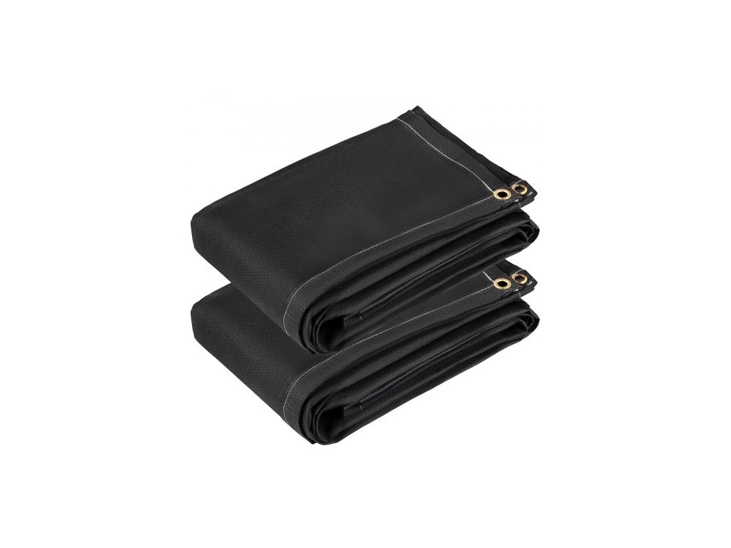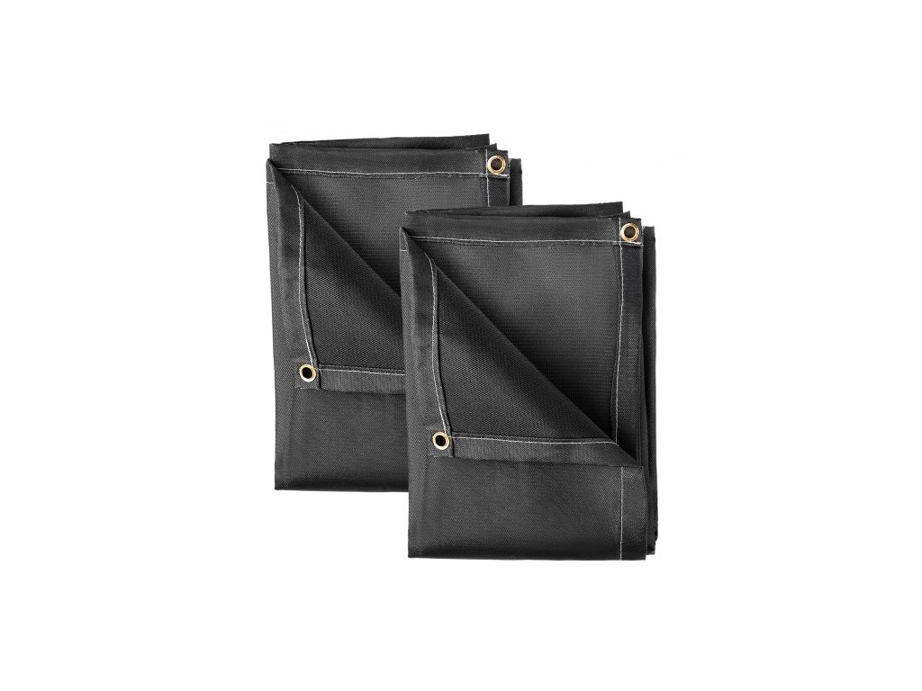 Protipožární deky , balení 2 svářečských deek, protipožární deka 2,4 x 3 m, nehořlavá deka 550 °C, černé nouzové protipožární deky, sklolaminátová nehořlavá deka s 12 mosaznými průchodkami