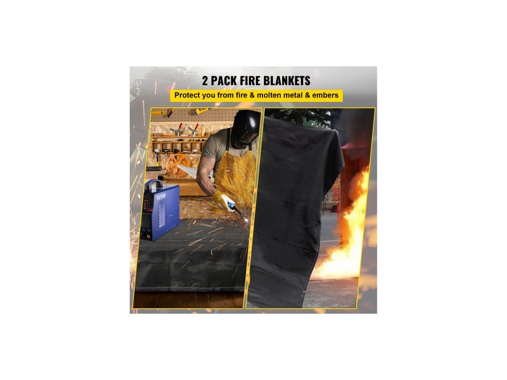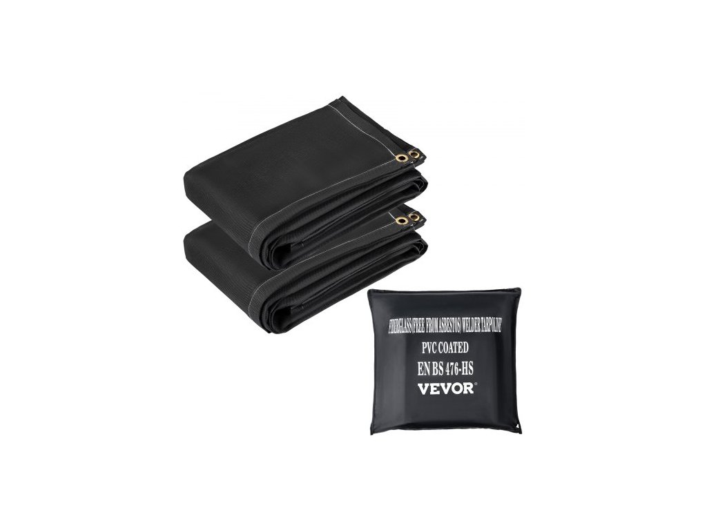 Protipožární deky , balení 2 svářečských deek, protipožární deka 2,4 x 3 m, nehořlavá deka 550 °C, černé nouzové protipožární deky, nehořlavá deka ze skelných vláken s 12 mosaznými průchodkamiVysoce kvalitní sklolaminát