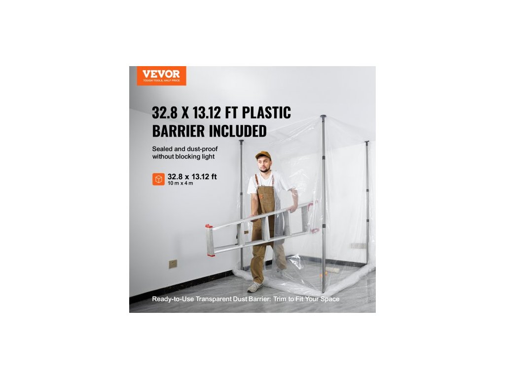 Protiprachové tyče , 10 stop dlouhé tyče se 4 teleskopickými tyčemi, přepravní taška a plastová fólie 32,8x13,12 stop, pro interiérové dekorace a malířské projektyPraštotěsná magie