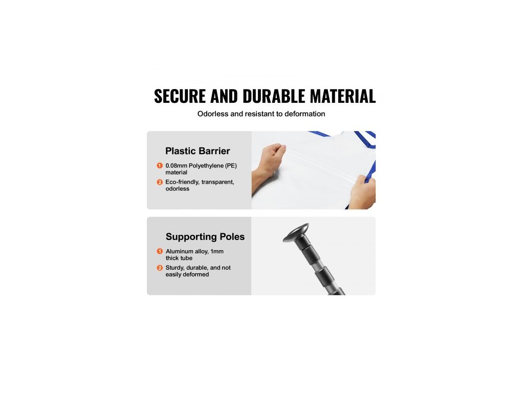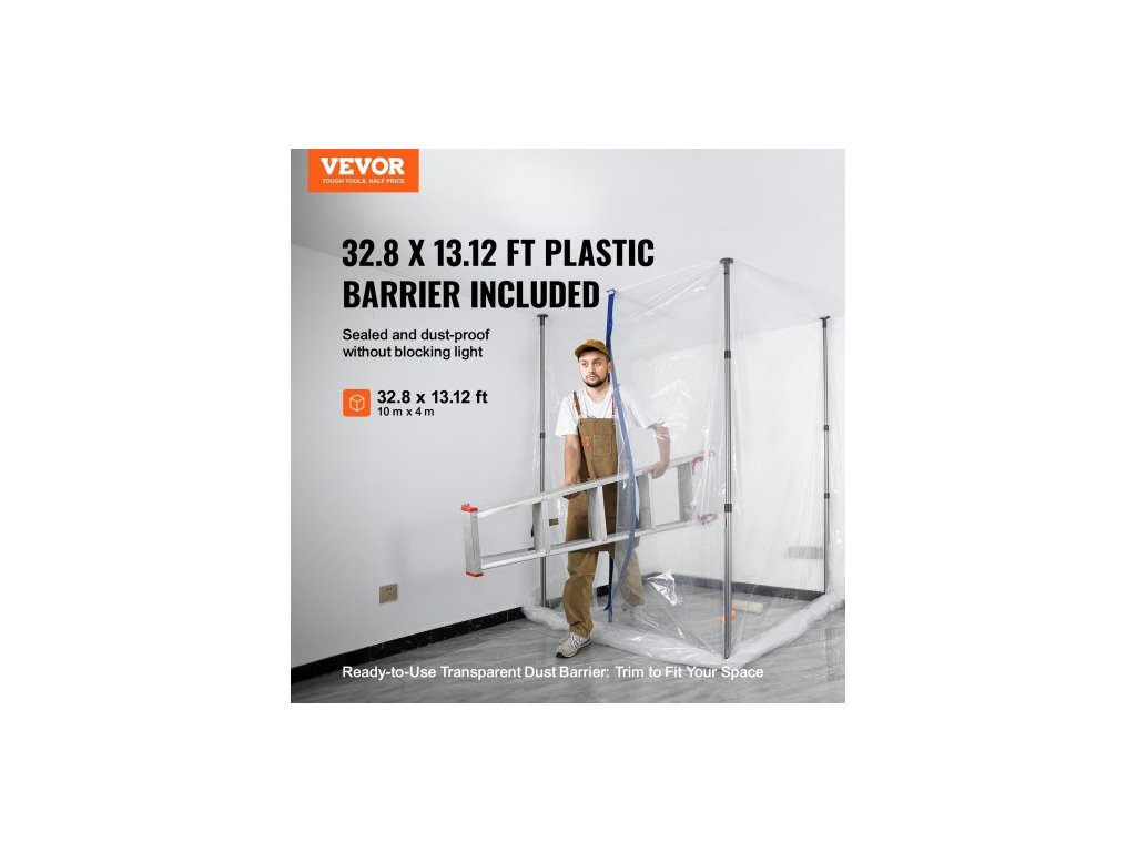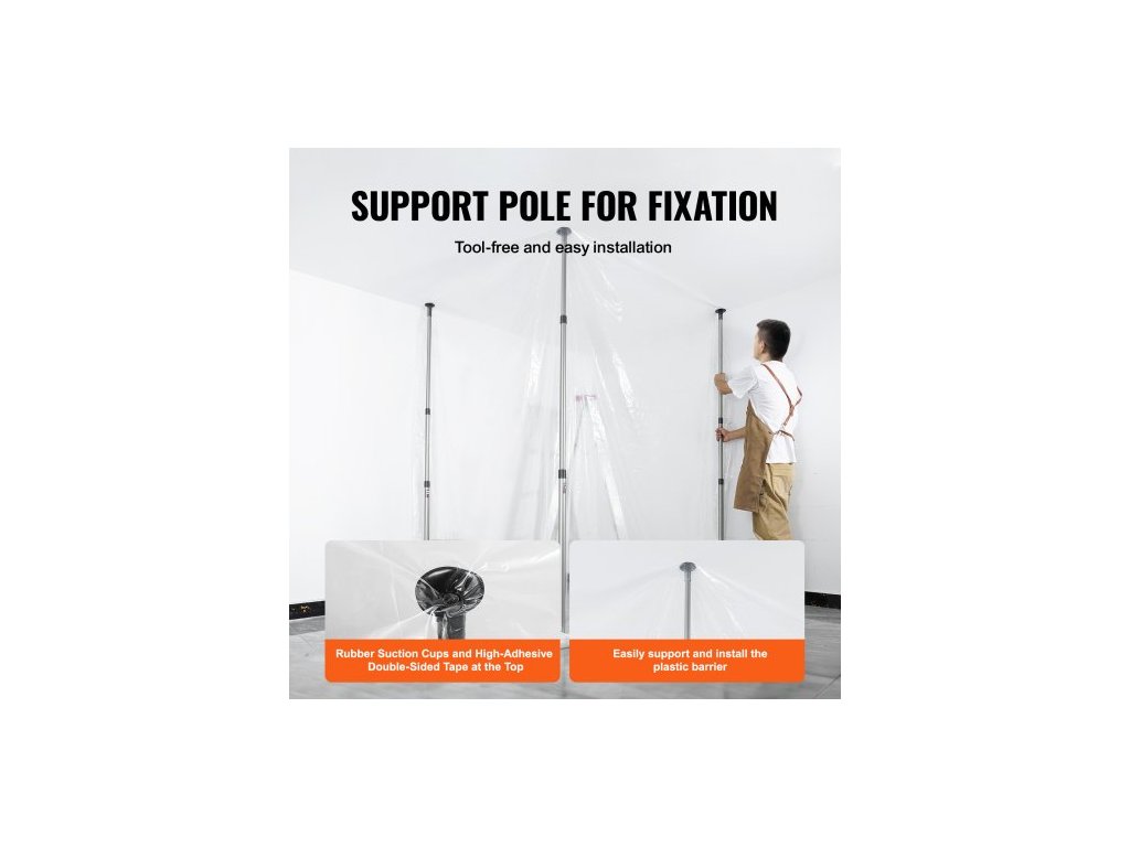 Protiprachové tyče , 304,8 cm dlouhé, systém protiprachových bariér se 4 teleskopickými tyčemi, magnetickým zipem, přepravní taškou a plastovou fólií 999,7 x 399,9 cm, pro interiérové dekorace, malování