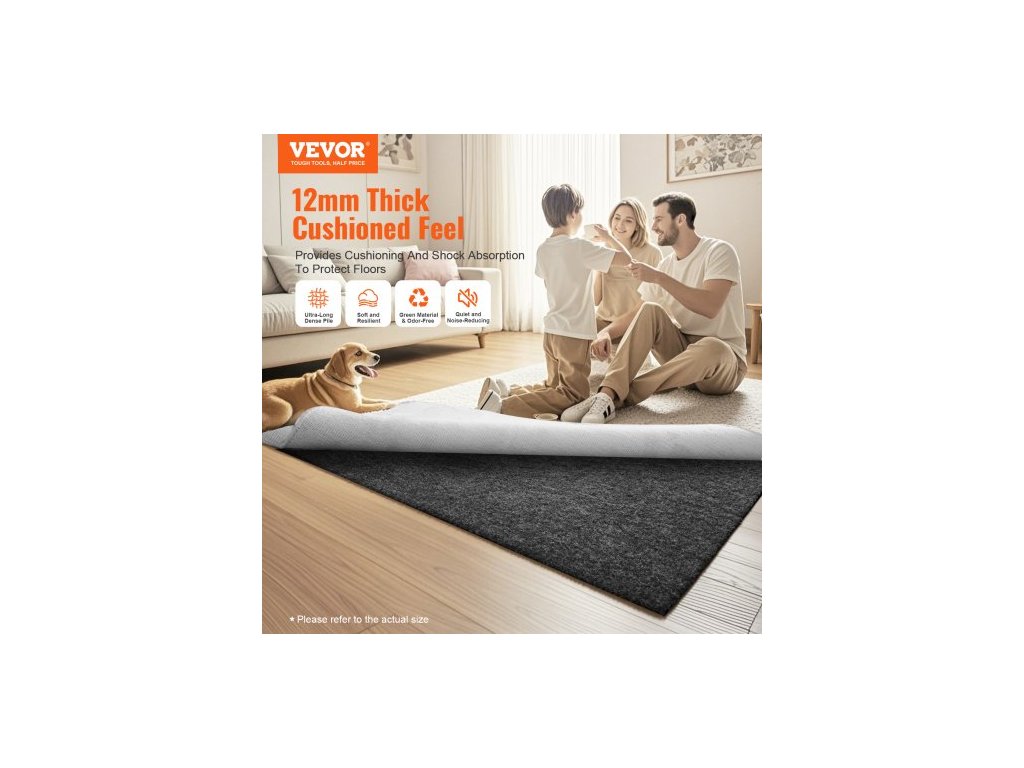 Protiskluzová podložka pod koberec , ochranná polstrovaná podložka pod koberec, 2'x8' (skutečná tloušťka 7,875'), 1/4" tlustá, dvojitý povrch, polyesterová plsť + latex, plocha 1-2㎡, polstrování koberce, bezpečné pro všechny podlahySilná a odolná