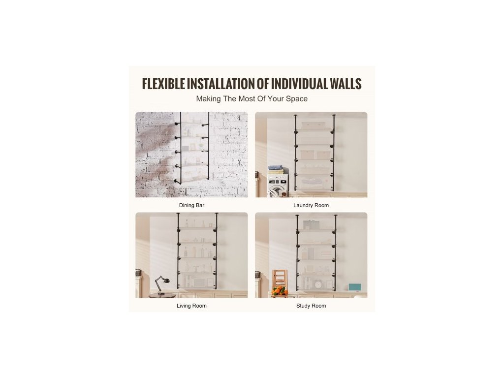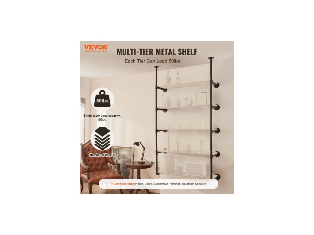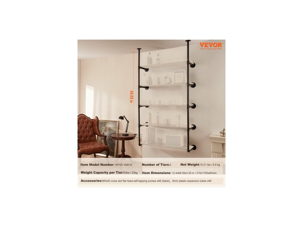 Průmyslová police na trubky, 5 úrovní, 2 ks, šířka 25 cm, nástěnné desky nejsou součástí balení
