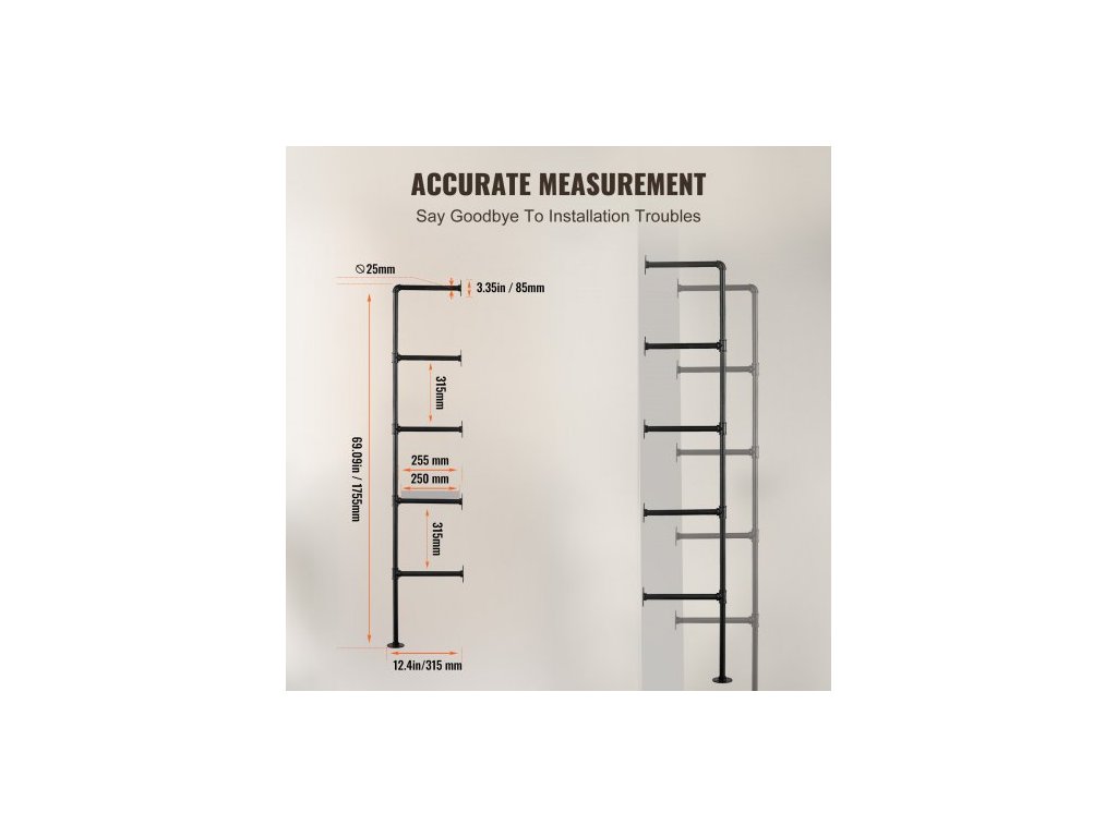 Průmyslová police na trubky, 5 úrovní, 2 ks, šířka 25 cm, nástěnné desky, NEJSOU součástí dodávkyNerezová a odolná