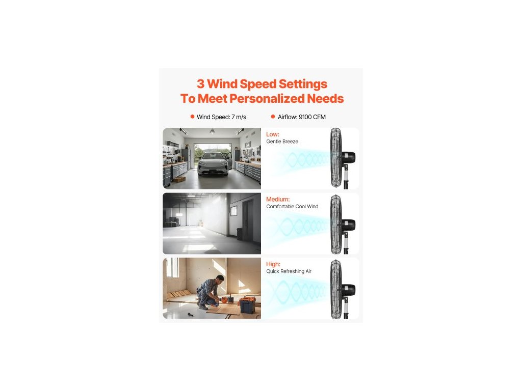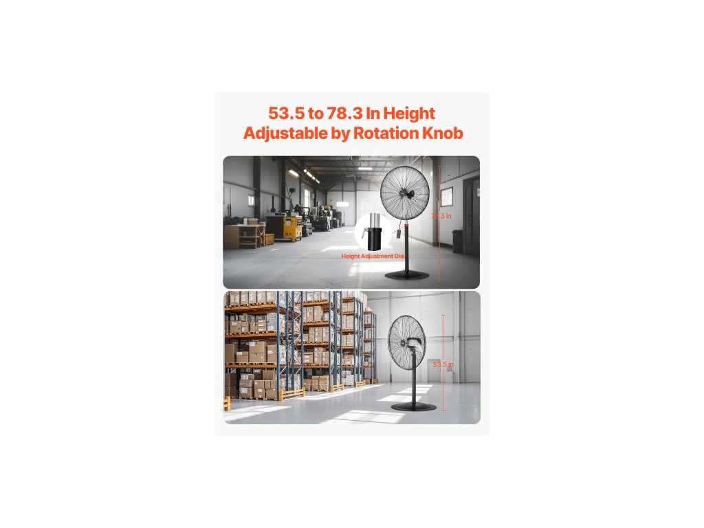 Průmyslový stojanový ventilátor , 30palcový oscilační ventilátor s úhlem otáčení 85 stupňů, výškově nastavitelné stojanové ventilátory se 3 nastavitelnými rychlostmi, vysoce výkonné podlahové ventilátory do ložnice, obývacího pokoje, domu, kanceláře,