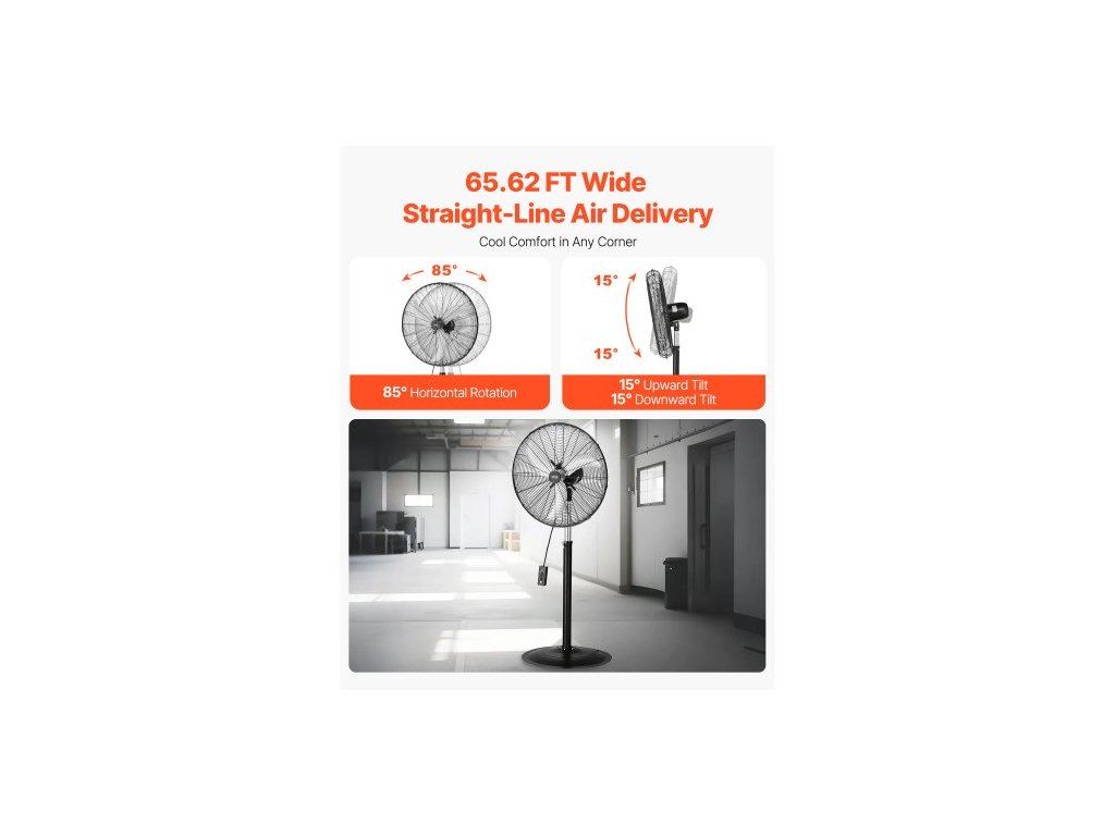 Průmyslový stojanový ventilátor , 30palcový oscilační ventilátor s úhlem otáčení 85 stupňů, výškově nastavitelné stojanové ventilátory se 3 nastavitelnými rychlostmi, vysoce výkonné podlahové ventilátory do ložnice, obývacího pokoje, domu, kanceláře, černýUžijte si osvěžující vánek