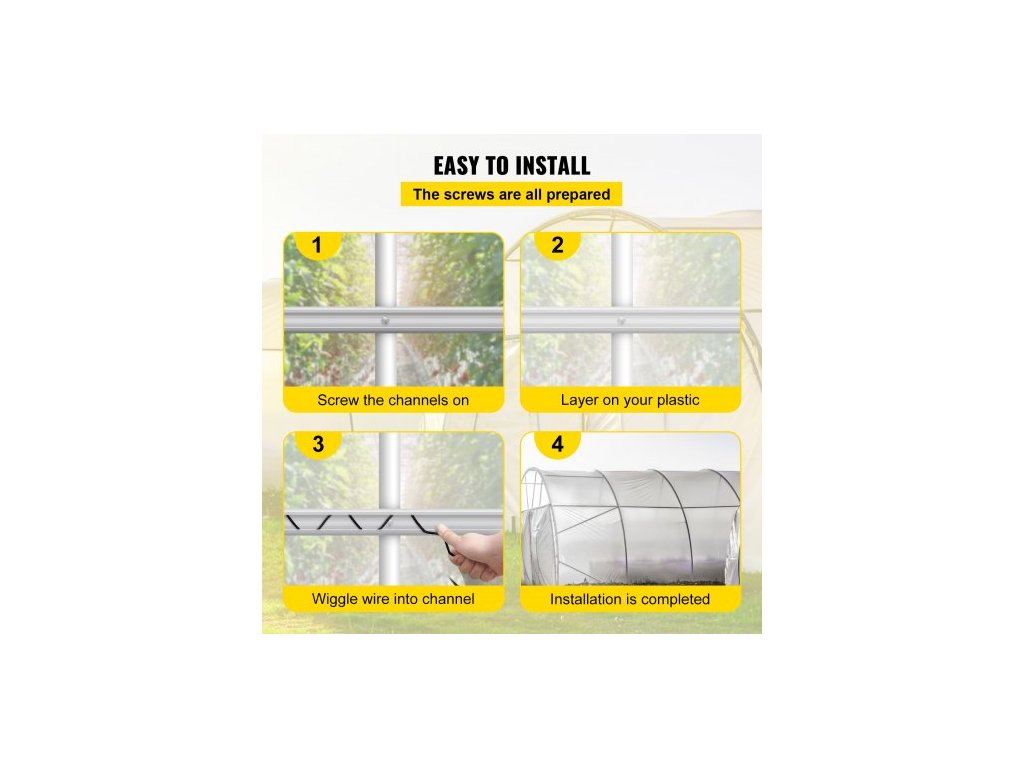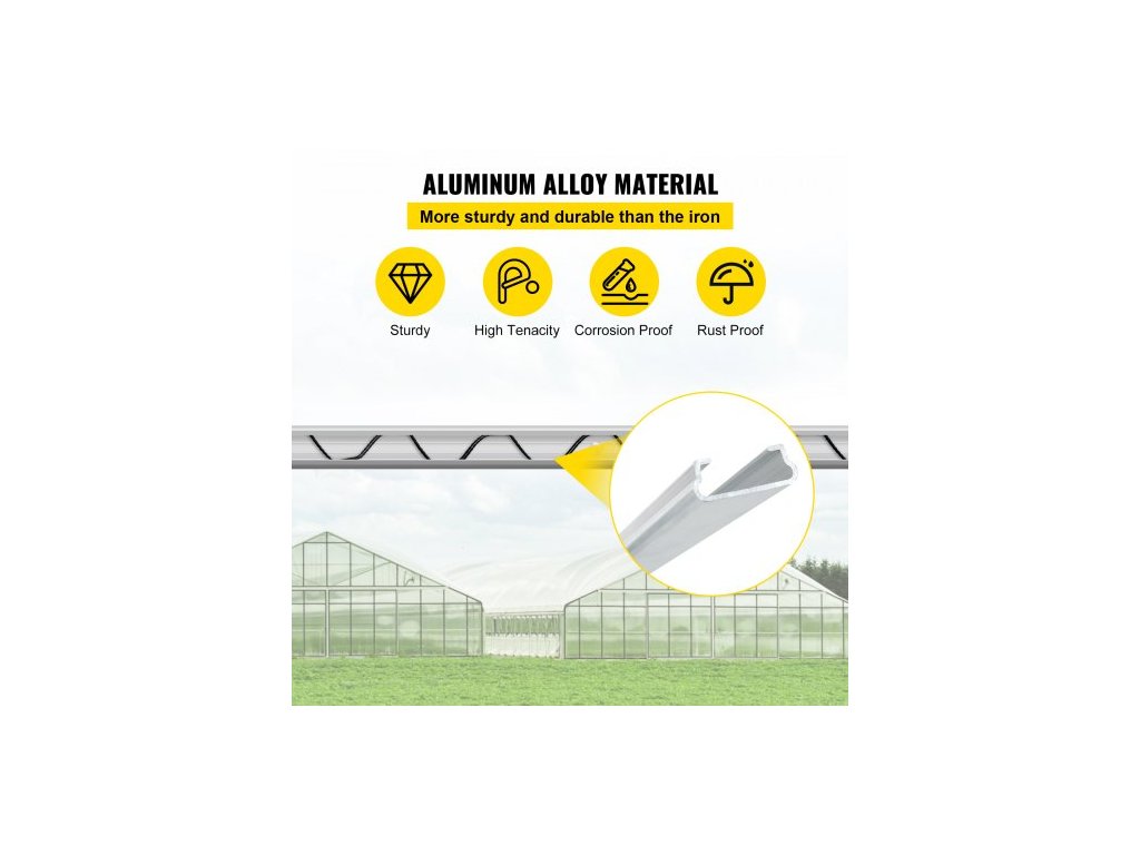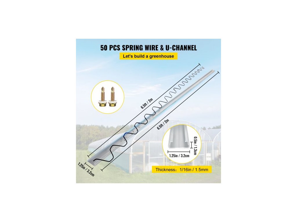 Pružinový drát a zámek, svazek 6,56 stop pružinového zámku a U-kanálu pro skleník, 50 balení pružinového drátu s PE povlakem a kanálu z hliníkové slitiny, upevnění z plastové polyetylenové fólie nebo stínící tkaniny se šroubem50 ks pružinového drátu a U-kanálu