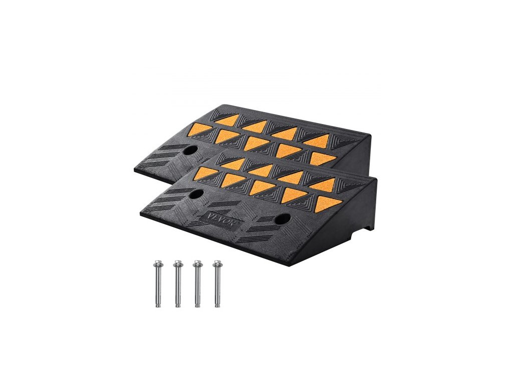Pryžové obrubníkové rampy, sada 2 ks, výška zdvihu 5", vysoká nosnost 33069 liber/15 tun, prahové rampy pro příjezdové cesty se stabilní mřížkovou konstrukcí pro automobily, invalidní vozíky, kola a motocykly.Tyto obrubníkové rampy se snadno umisťují do drážek vozovky, což umožňuje vašemu vozidlu plynulý průjezd hrbolatými úseky vozovky a zabraňuje poškození spodní části vozidla nebo pneumatik způsobenému drážkami nebo rampami.
